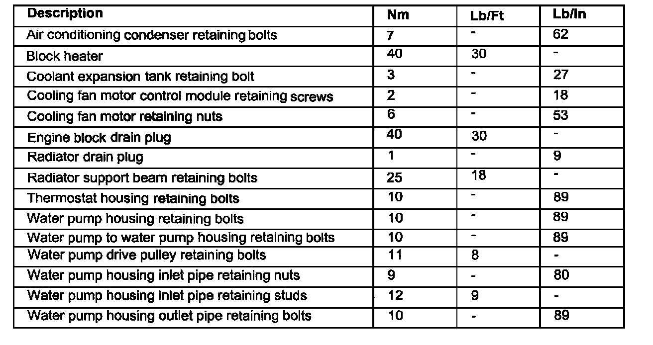 Engine Cooling Torque Specifications