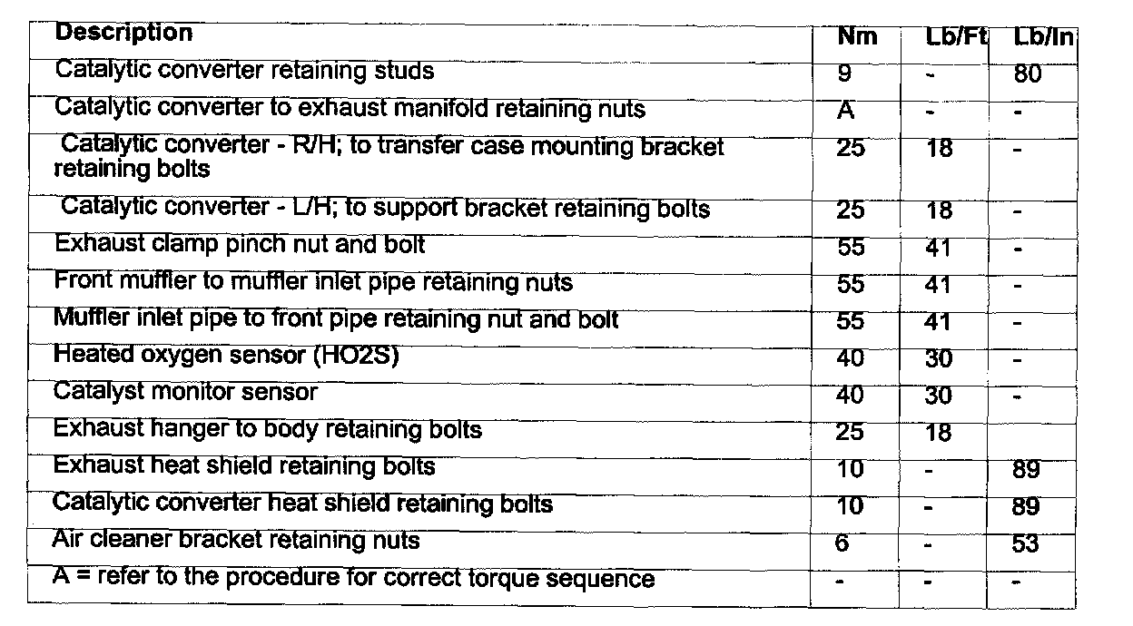 Exhaust System Torque Specifications