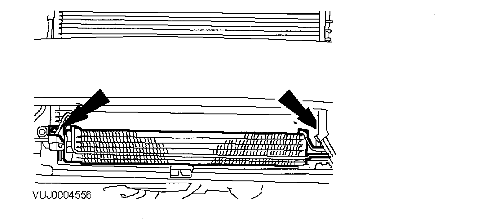 NOTE: Lower transmission fluid cooler tube shown, upper similar.