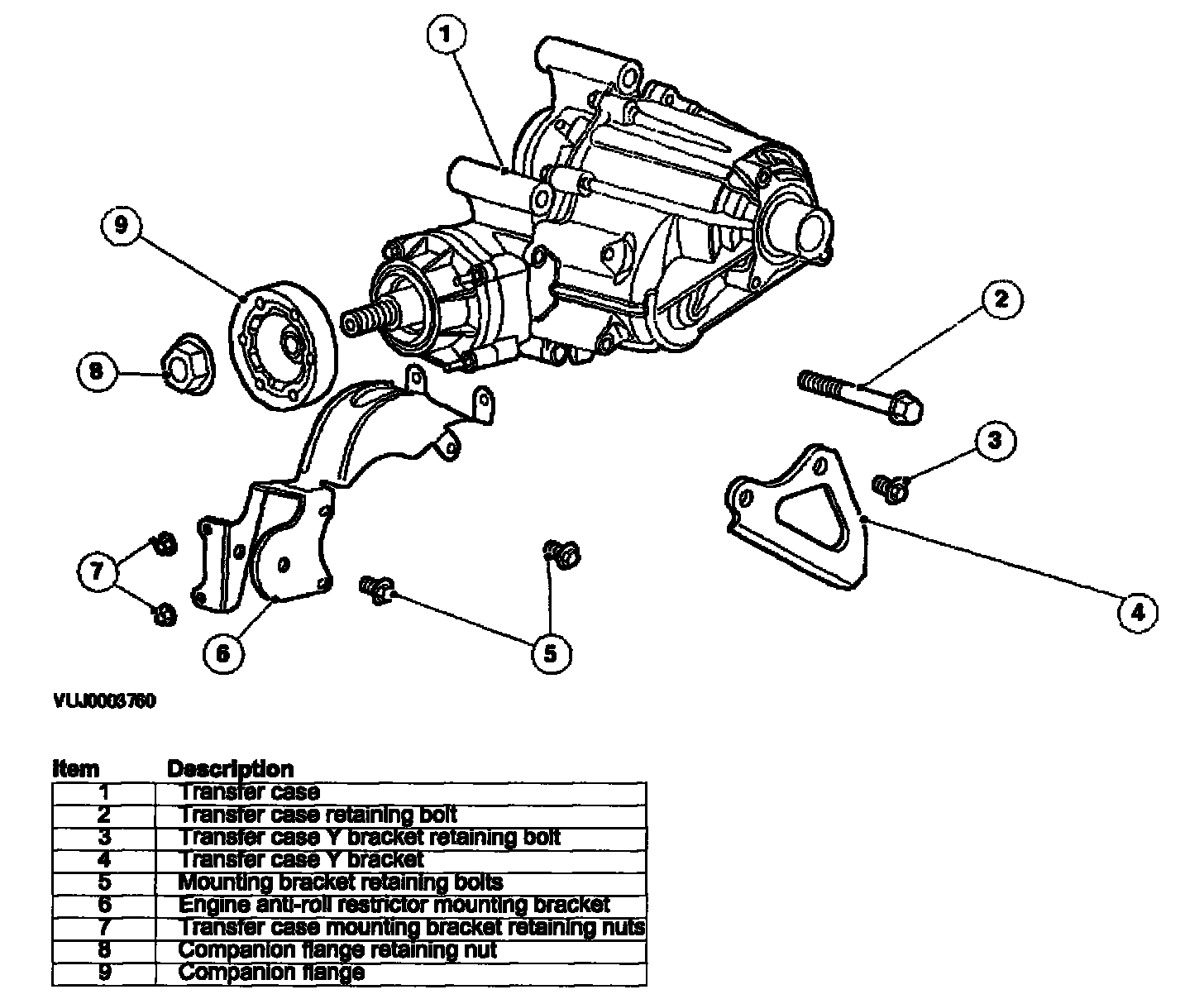 The transfer case system consists of a power transfer unit, rear driveshaft, coupling device and rear axle. The power transfer unit is a gearbox that attaches to the transaxle. The right hand halfshaft engages to the transfer case link shaft, which engages to the differential side gears as in a normal 4x2 applications. The transfer case provides power to the driveshaft through a helical gear spline coupled to the transaxle differential case, a helical gear drop (idler gear) and hypoid/helical ring gear assembly and pinion set. Repair of the transfer case is limited to seals and gaskets. If any of the geared components, tapered roller bearings, case cover or internal shafts fails, a new transfer case must be installed. The transfer case is sealed from the transaxle and has its own sump. The transfer case uses SAE 75W140 synthetic gear lubricant. The transfer case fill plug is located on the top of the casing under the transfer case mounting bracket.