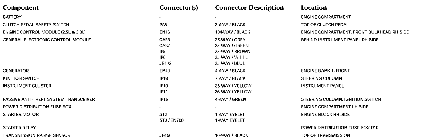 Battery; Starter; Generator: 2.5L & 3.0L