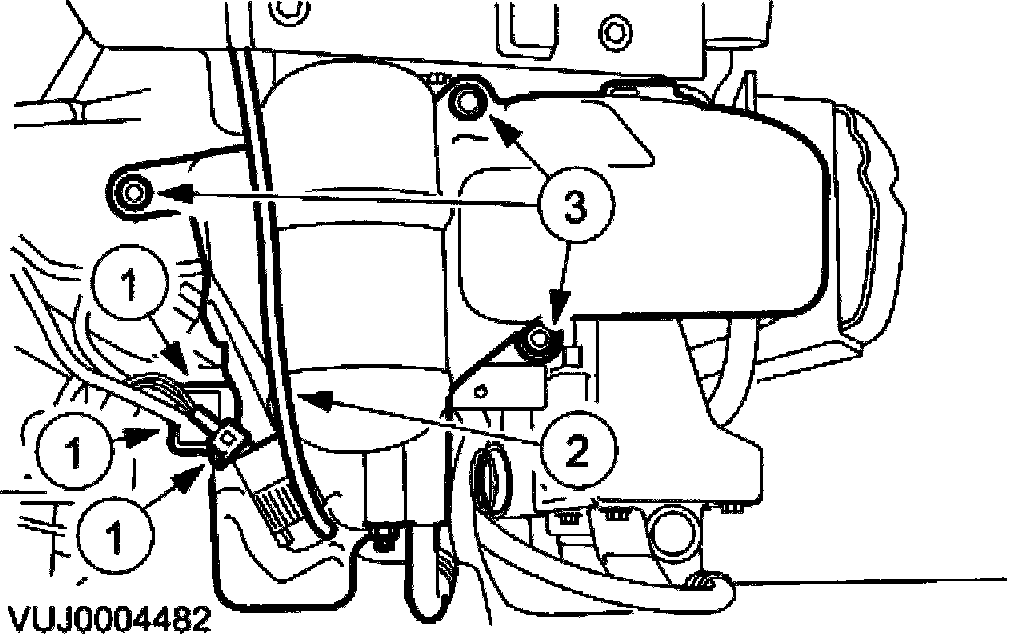 3. Remove the ABS module support bracket retaining bolts.