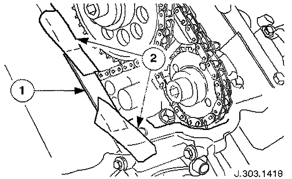 Place a flat piece of steel strip along the timing cover horizontal jointing face, adjacent to the exhaust camshaft sprocket.