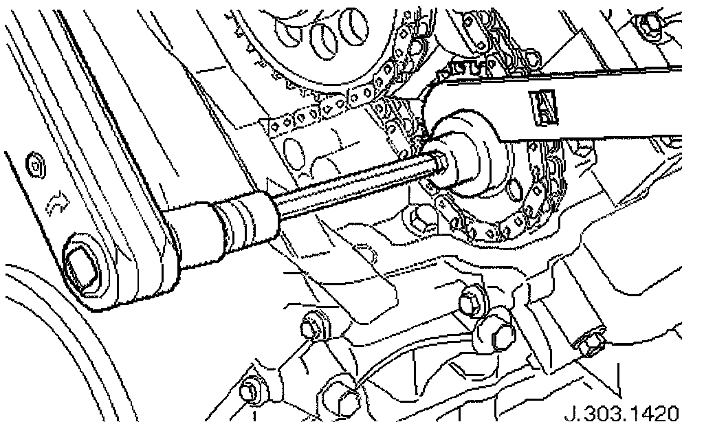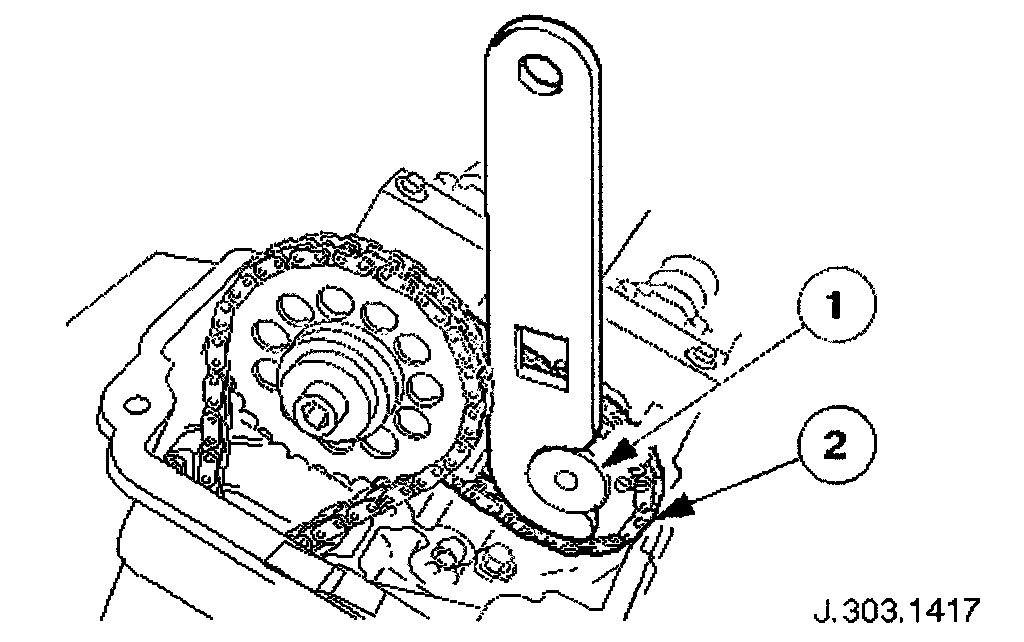 Adjust the position of the sprocket within the chain to allow the chain tensioning tool 303-532 to be approximately vertical, as shown.
