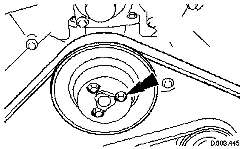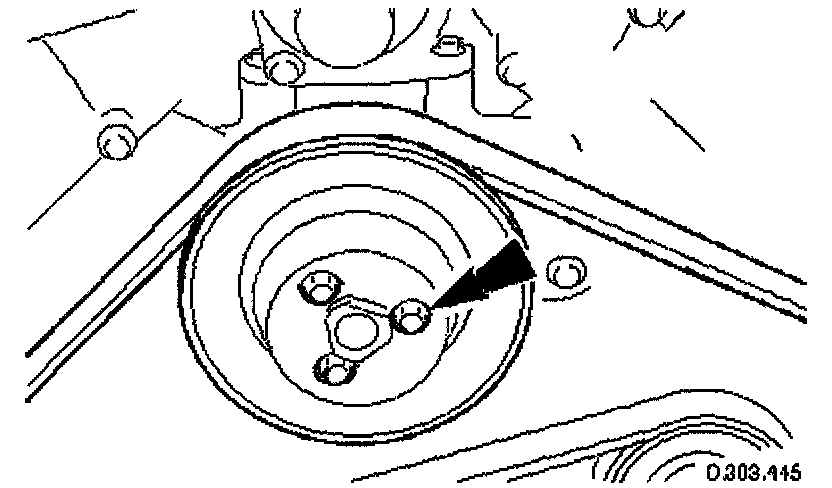 7. Slacken the three screws which secure the water pump pulley.