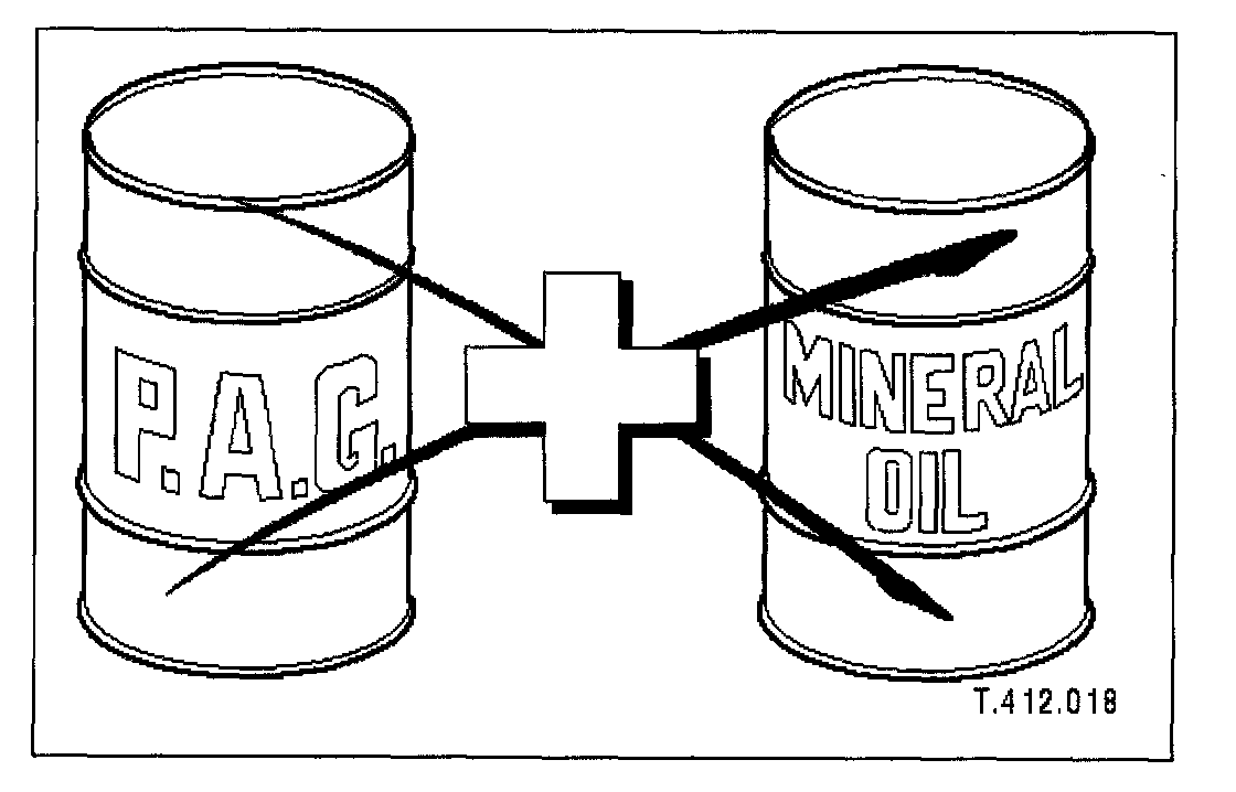 PAG oil is NOT compatible with previously used mineral based oils and must NEVER be mixed. Do not re-use oil when it has been separated from refrigerant, following a recovery cycle. Dispose of used oil safely.