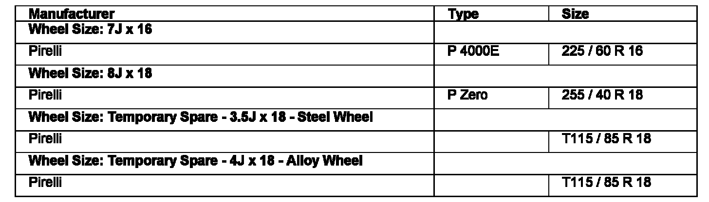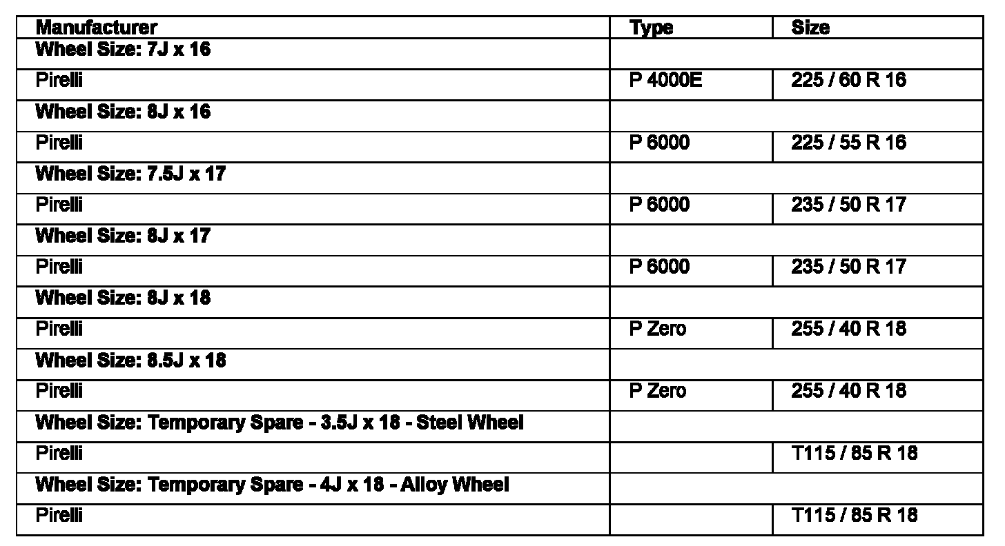 Recommended Tires - UK, European and Overseas Markets