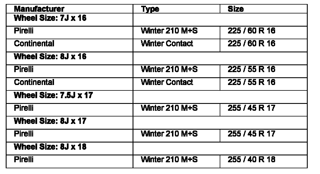 Recommended Winter Tires