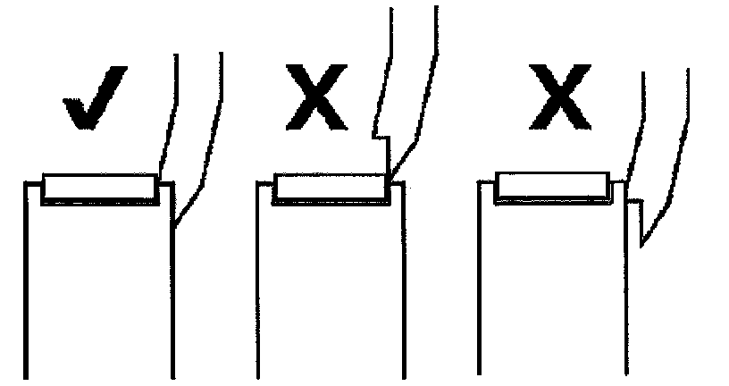 12. Position the fingers on to the outer edges of the tappet. It is essential that the recessed step on each finger, locates on the edge of the tappet as indicated. The use of a mirror will help, as viewing access is restricted.