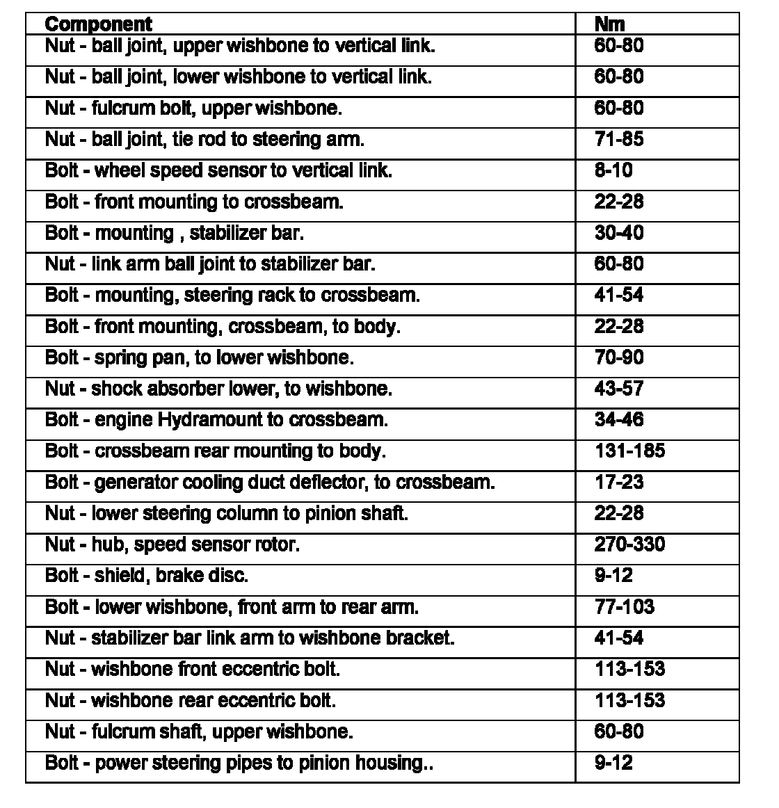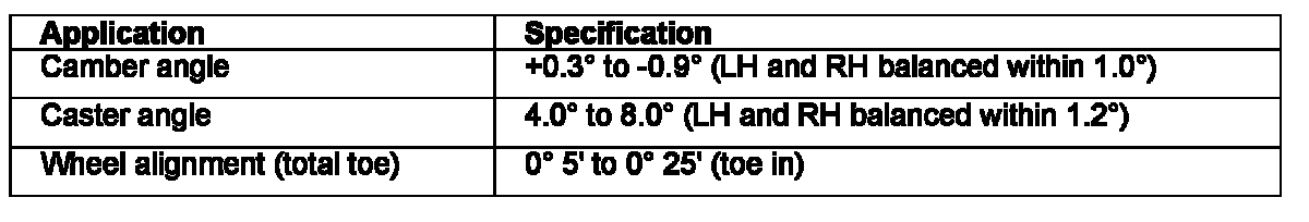 NOTE: Settings to be checked with the vehicle at 'curb' height (unladen, with full tank of fuel).