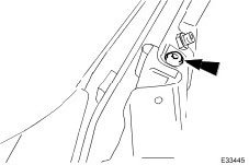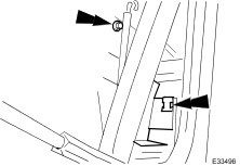 - Mark the position of the glass rear runner upper securing screw.