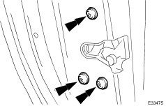 - Release shield from spring clip at rear and remove shield from door.