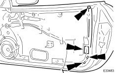 8. Slacken and remove the door glass rear runner lower securing screws.