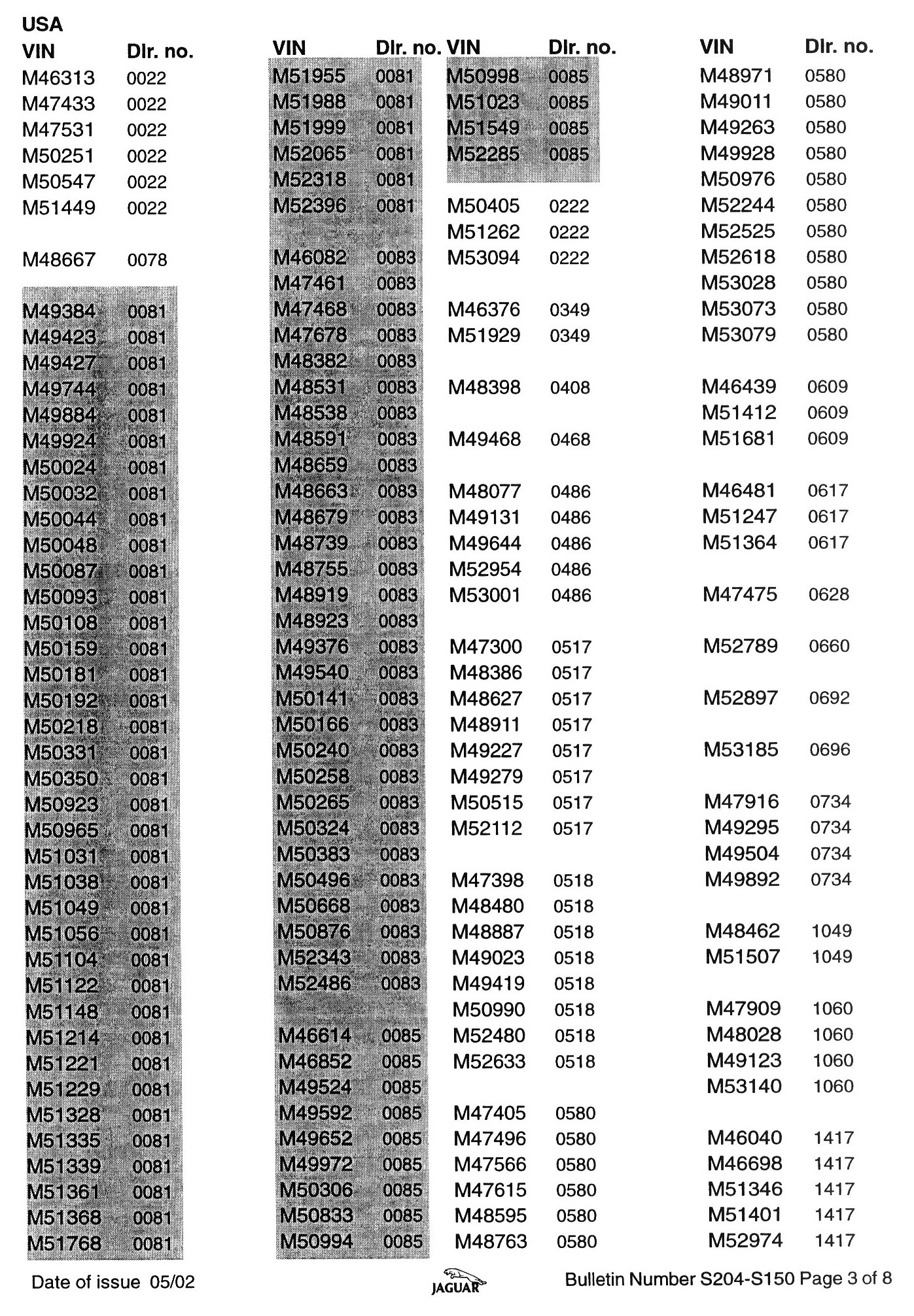 Check, and reset if necessary, the rear toe of the 2003 MY S-TYPE vehicles listed..