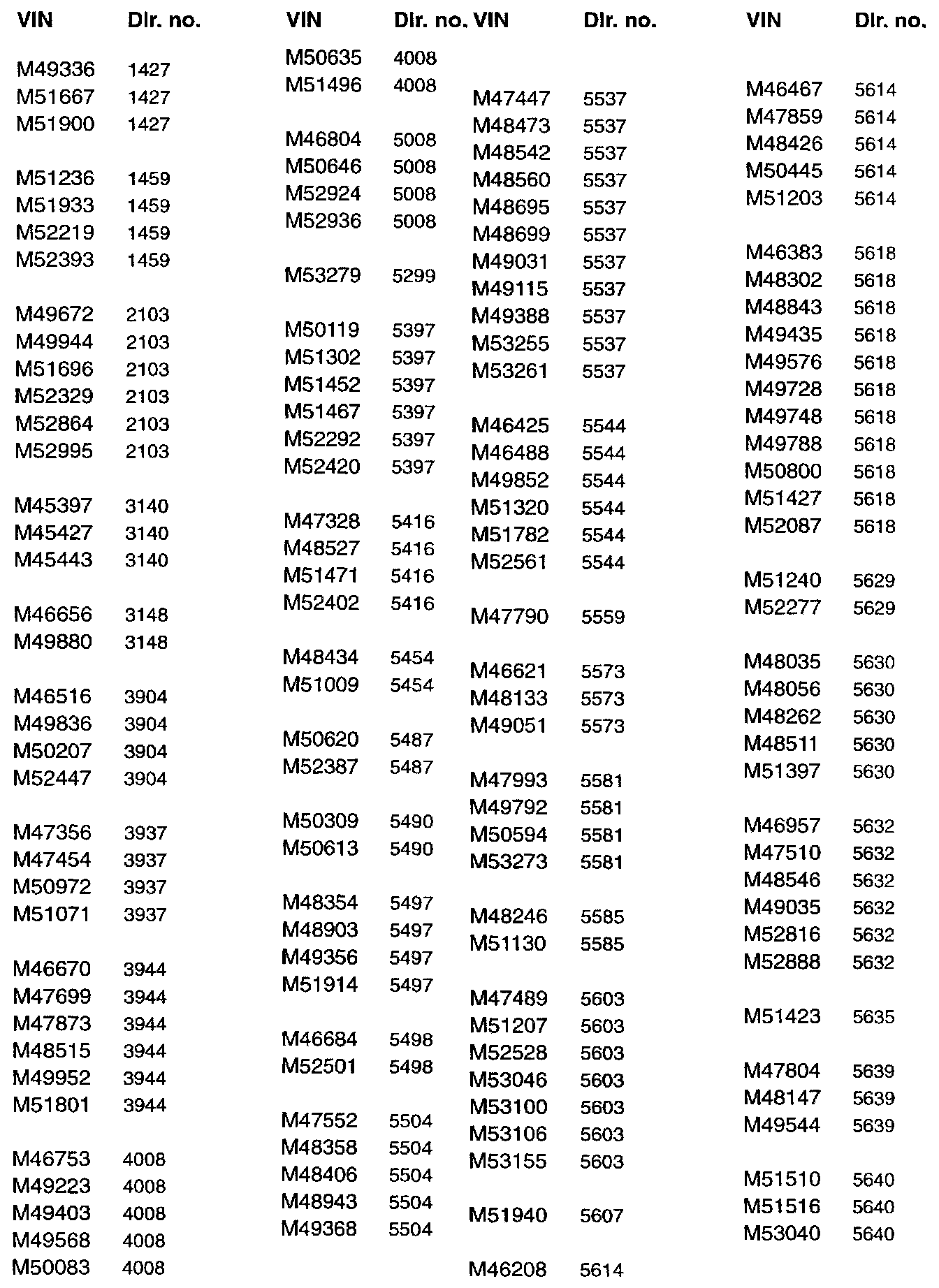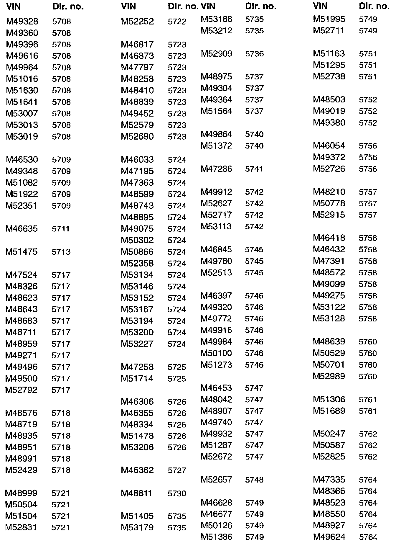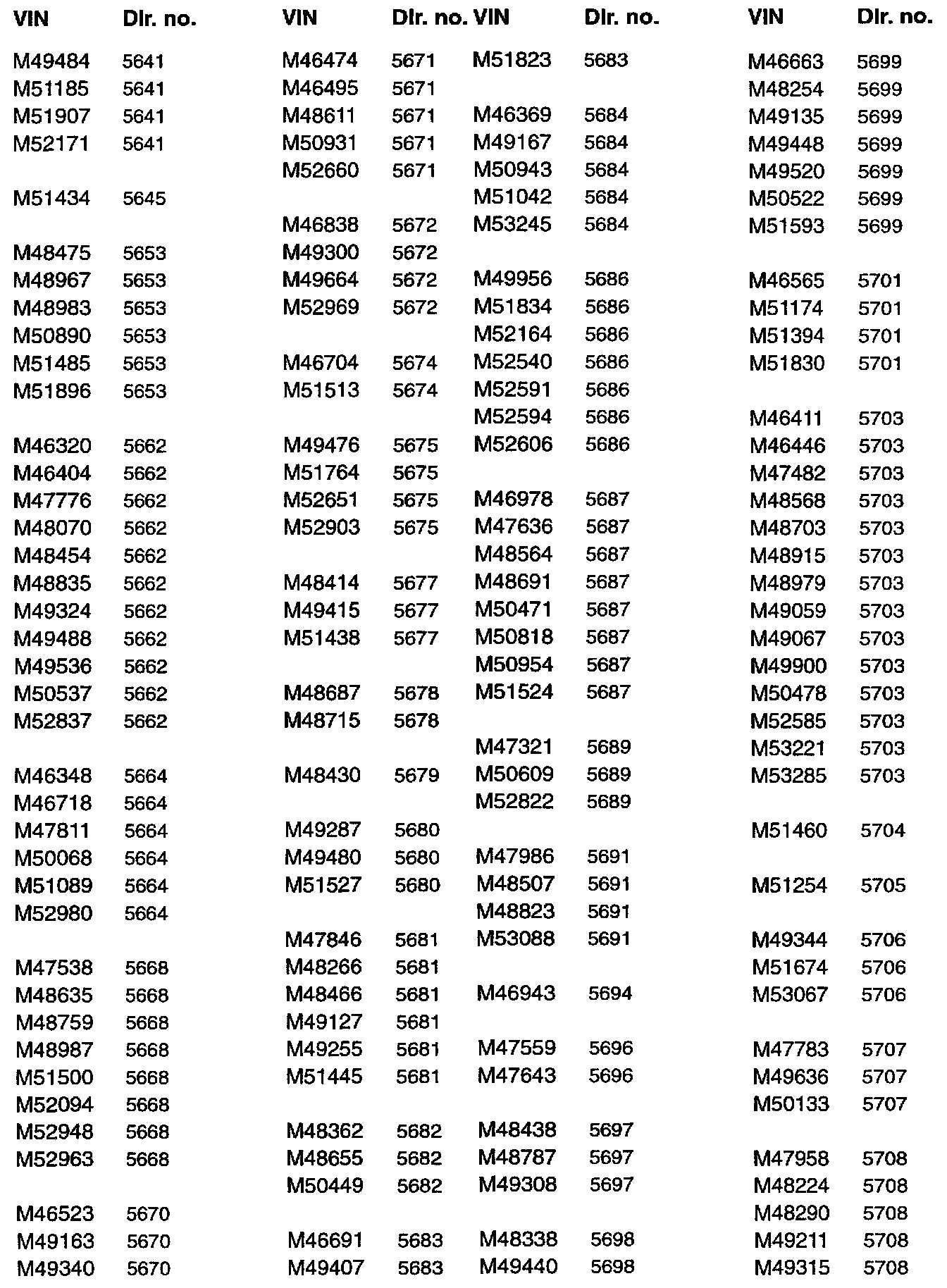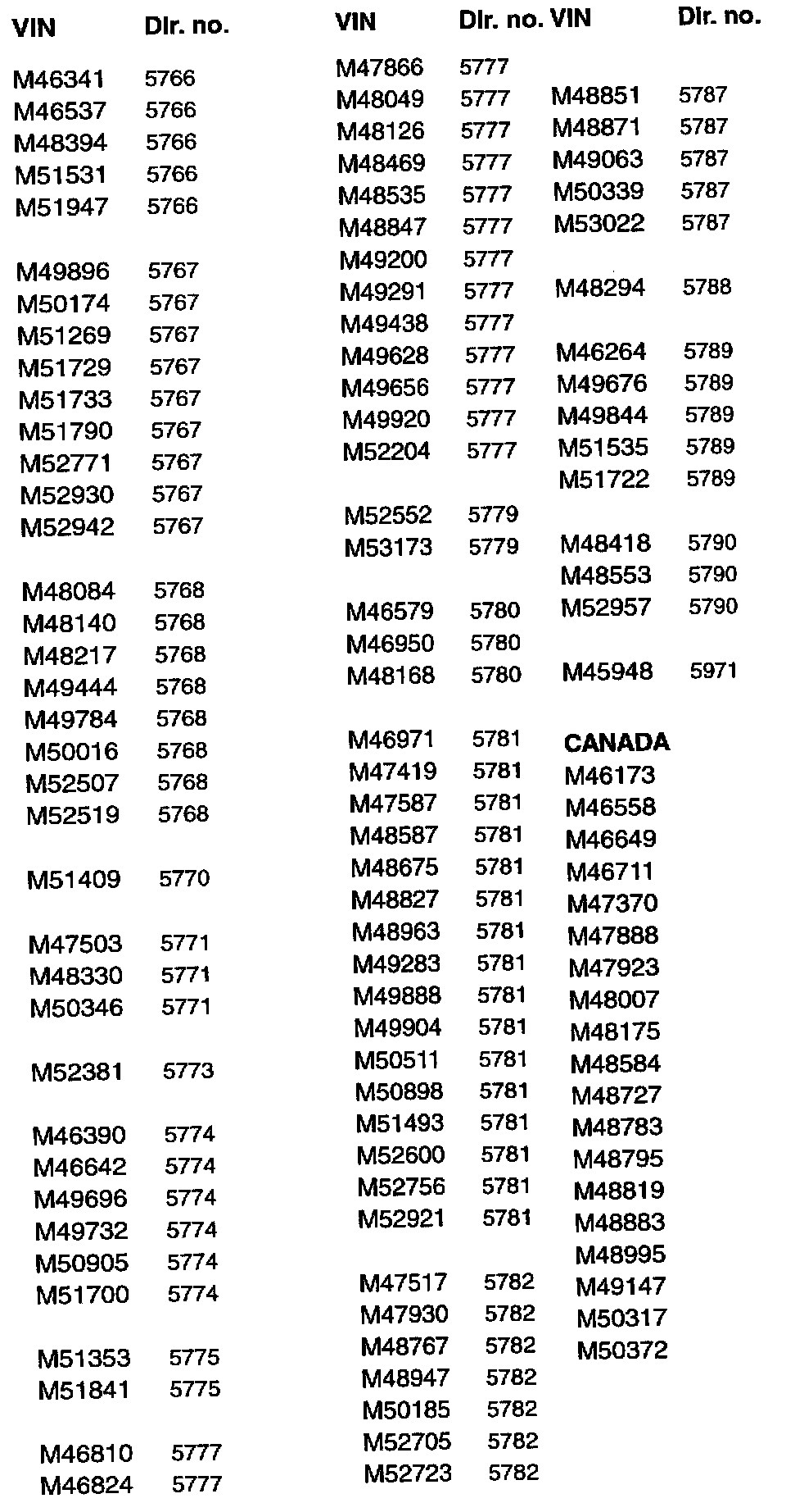 The vehicles identified by shading have not been allocated to dealers as of the date of this printing. Check your dealer records to determine if you may have received one of these vehicles since this bulletin was issued.