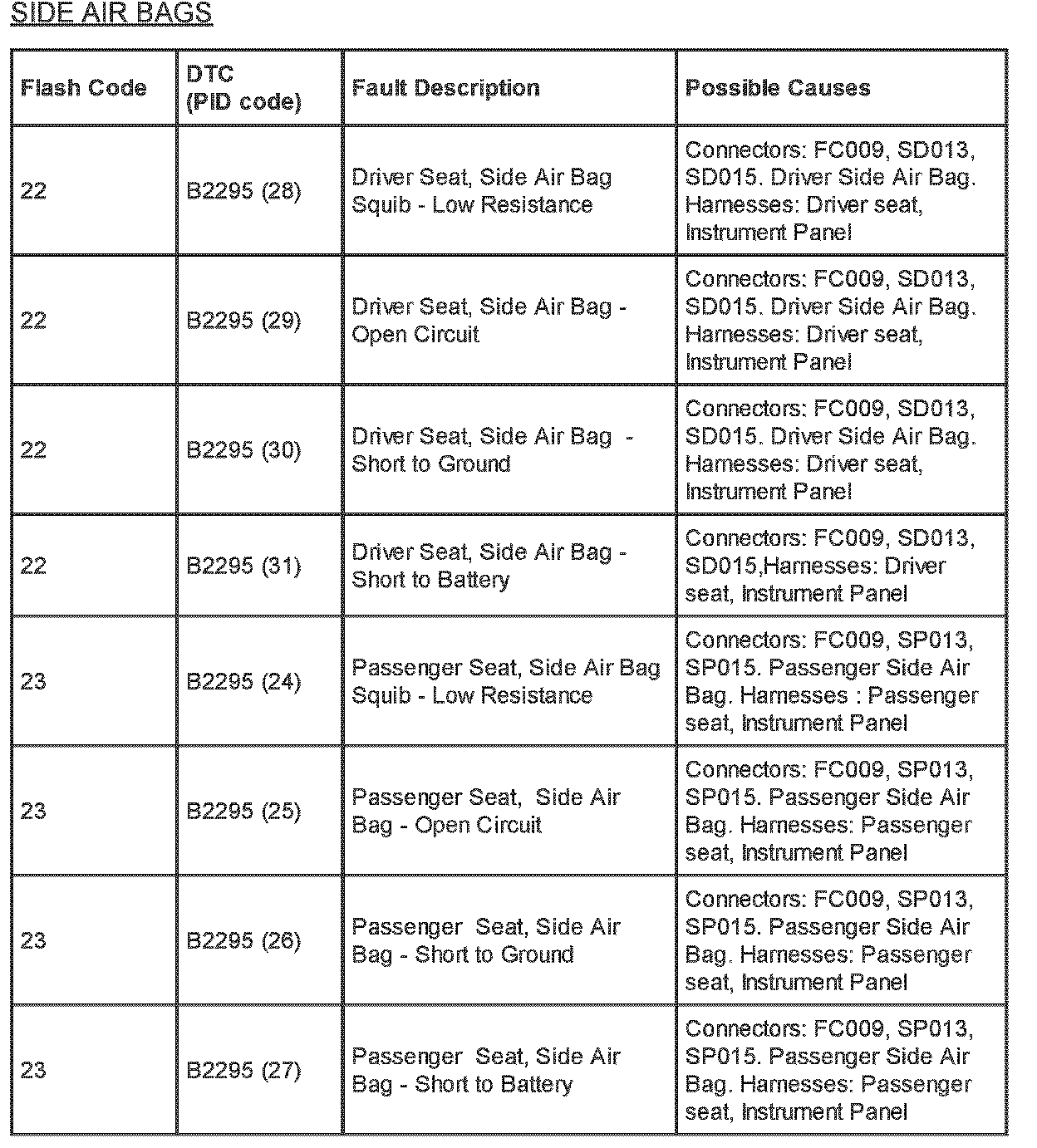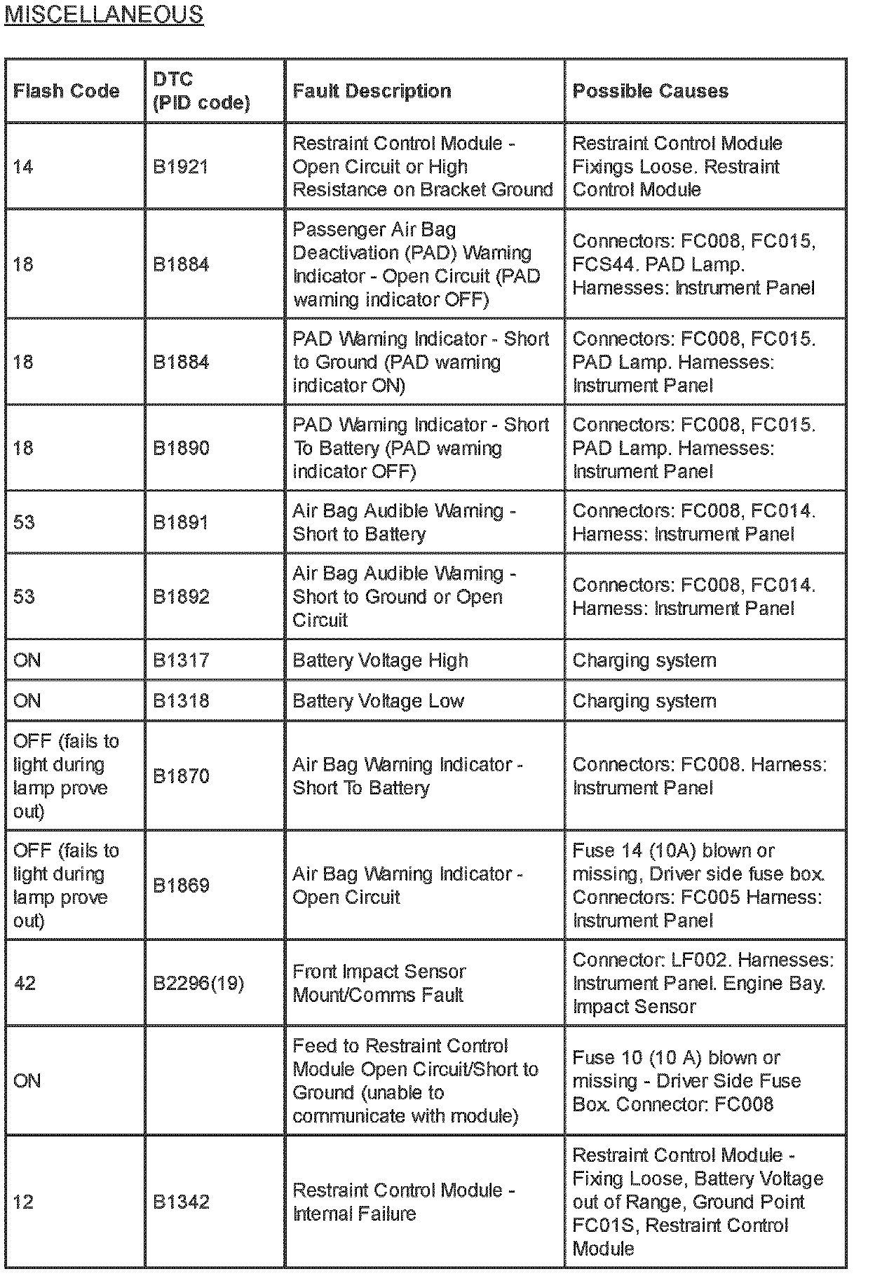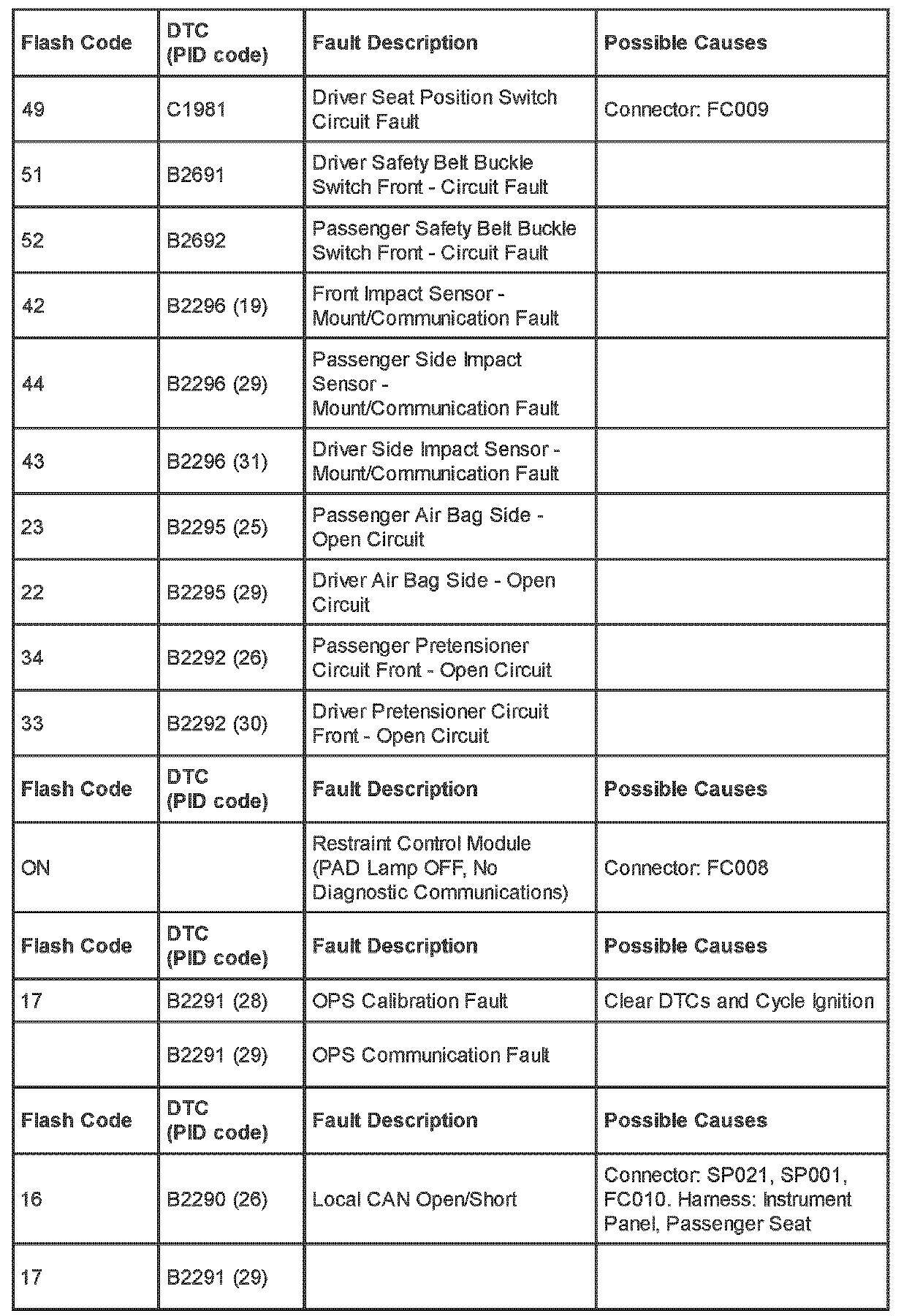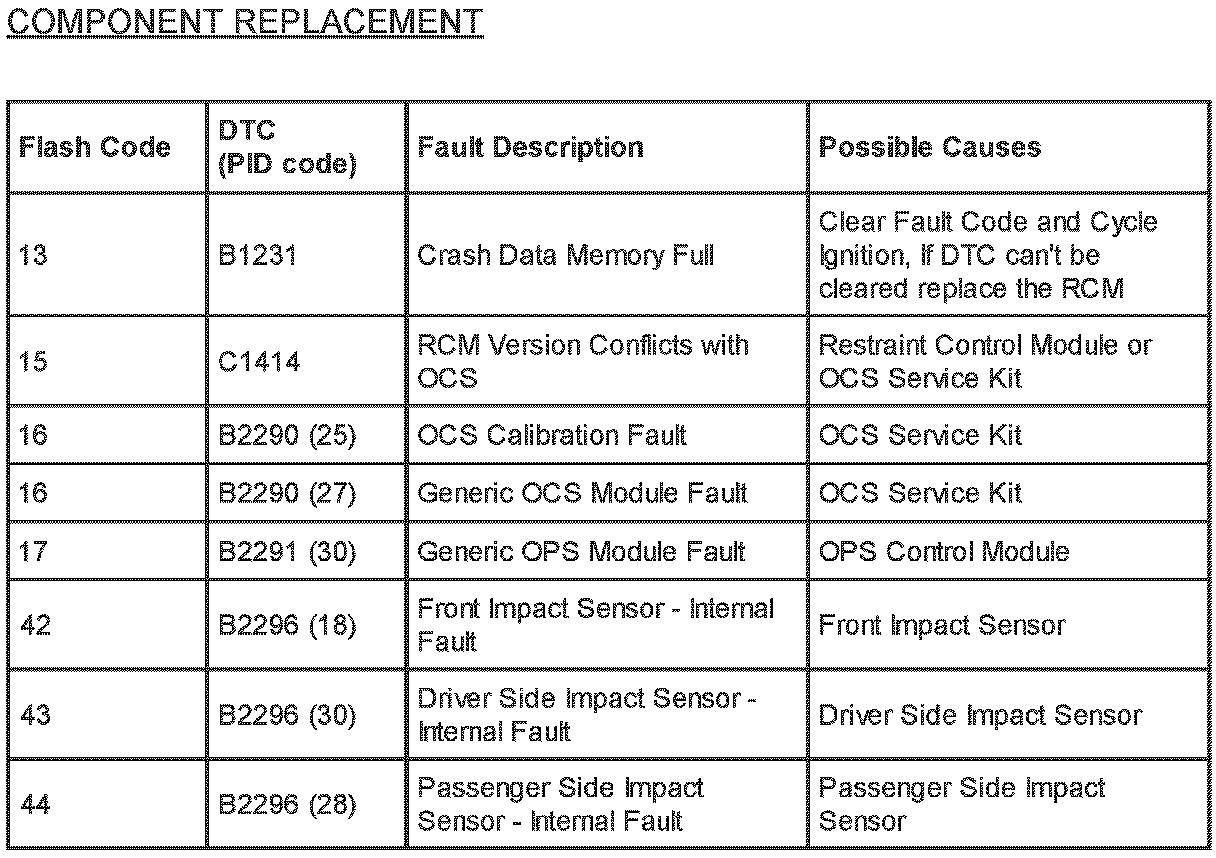 Restraints - SRS Flash Code/PID Code Definitions