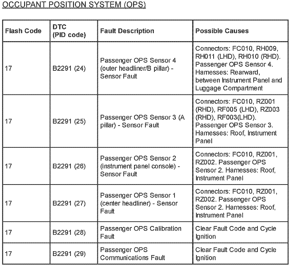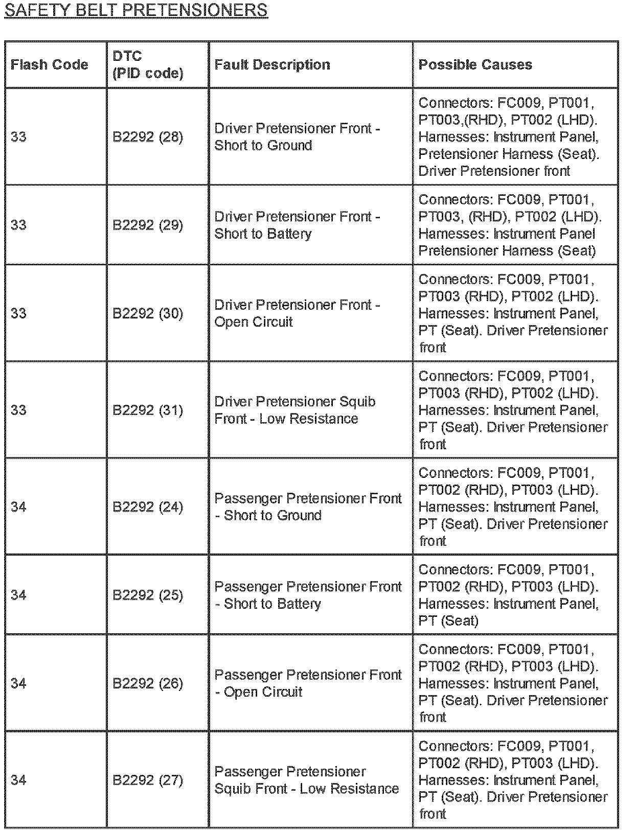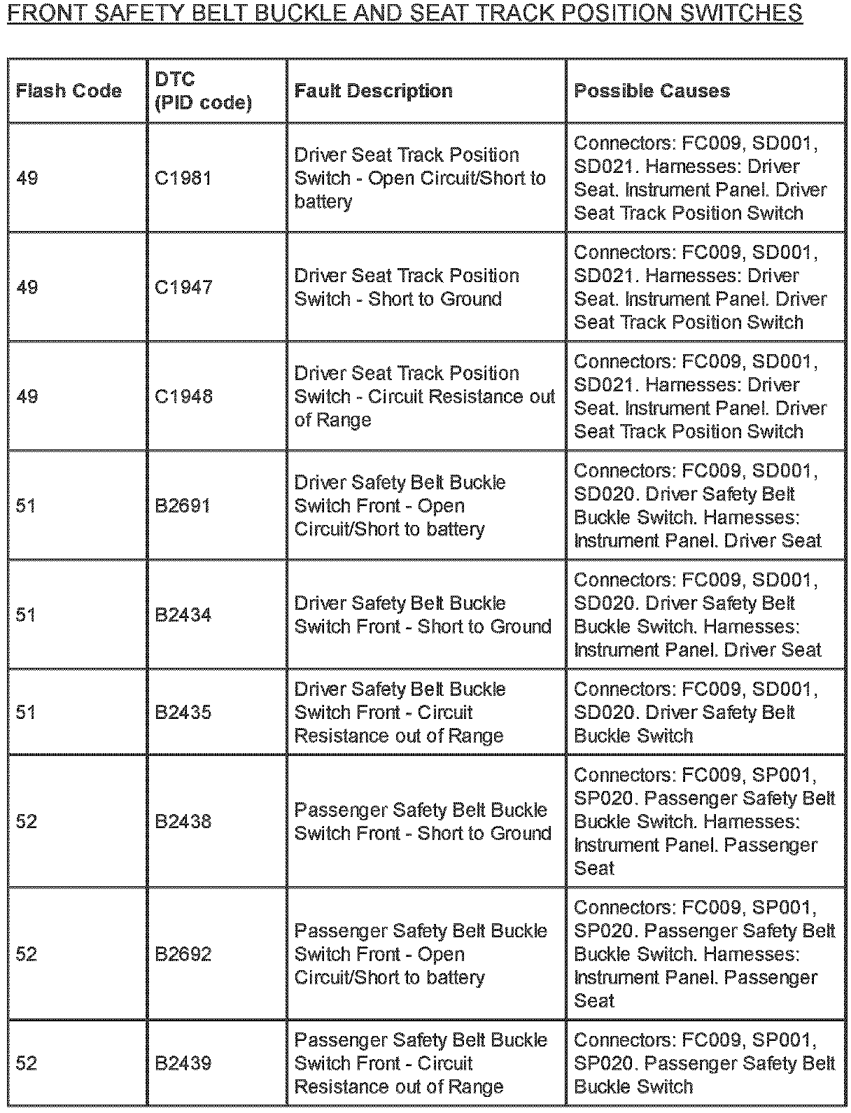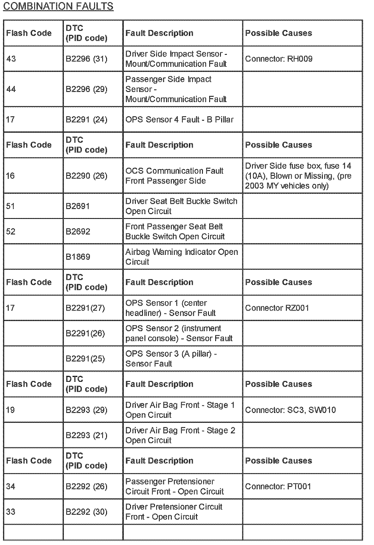 Restraints - SRS Flash Code/PID Code Definitions
