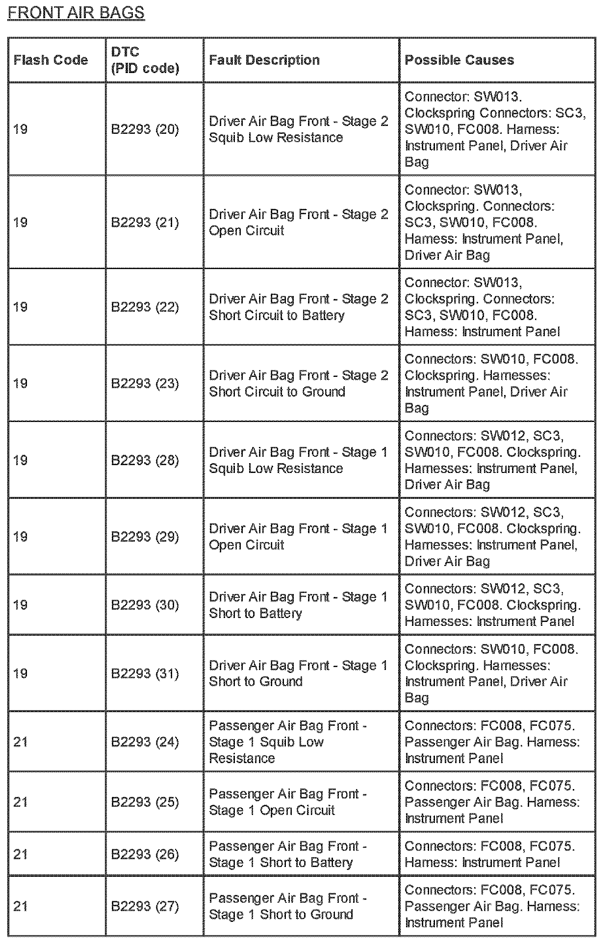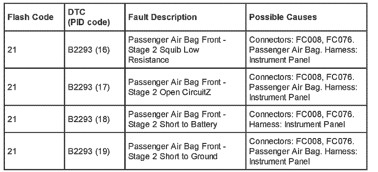 Supplemental Restraint System (SRS) Flash Code and PID Code Definitions - Diagnostic Aid