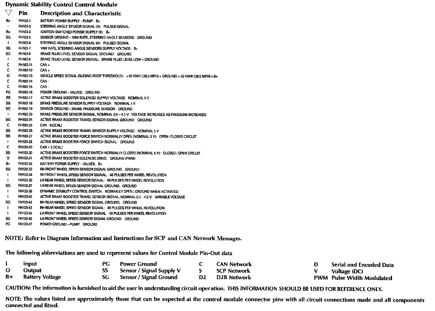Control Module Pin-Out Information: