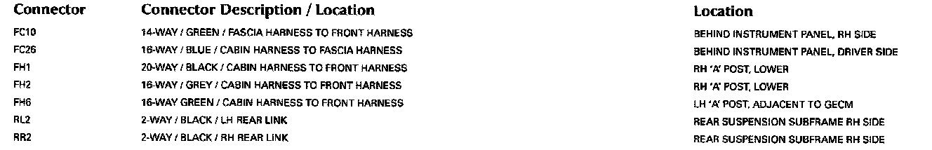 Refer to Vehicle/Locations for detailed information and illustrations regarding the location and identification of harnesses, relays, grounds and control modules. Locations