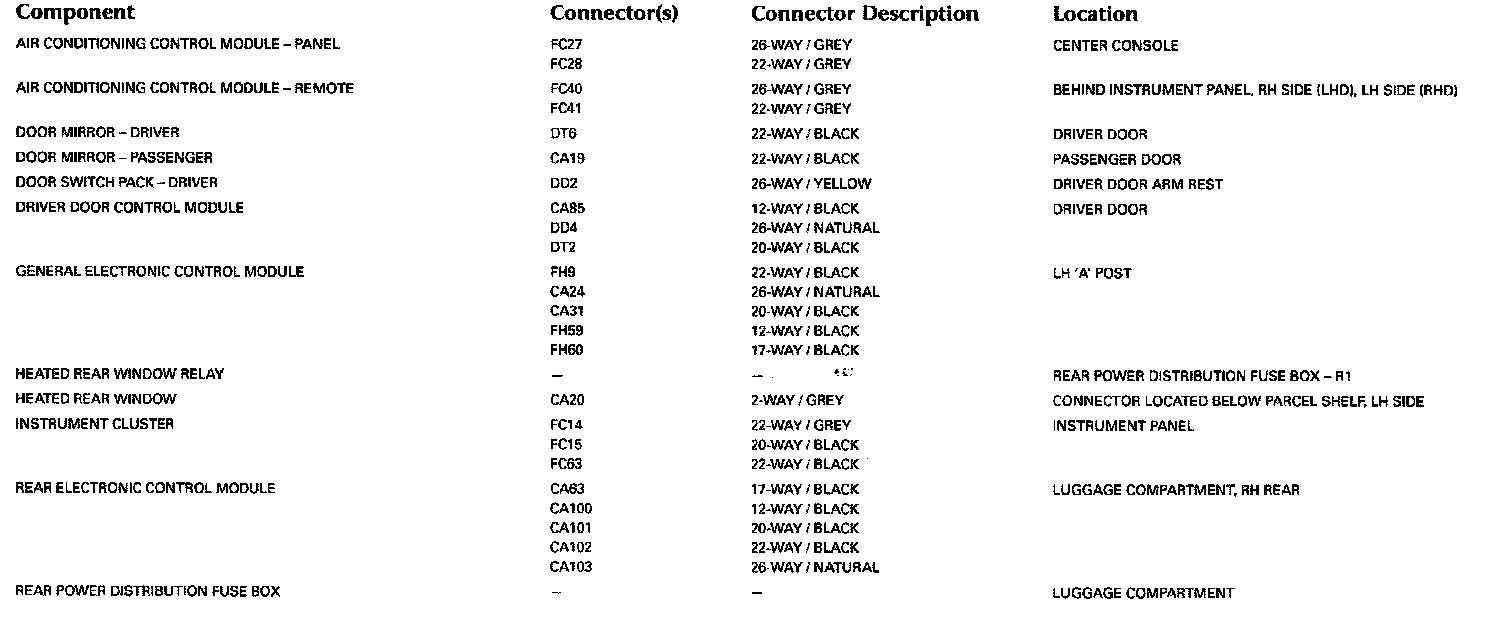 For detailed informations and illustrations regarding the location and identification of control modules pins, refer to Vehicle/Diagrams/Connector Views. Connector Views