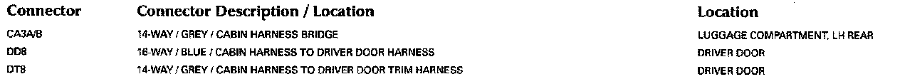 Refer to Vehicle/Locations for detailed information and illustrations regarding the location and identification of harnesses, relays, grounds and control modules. Locations