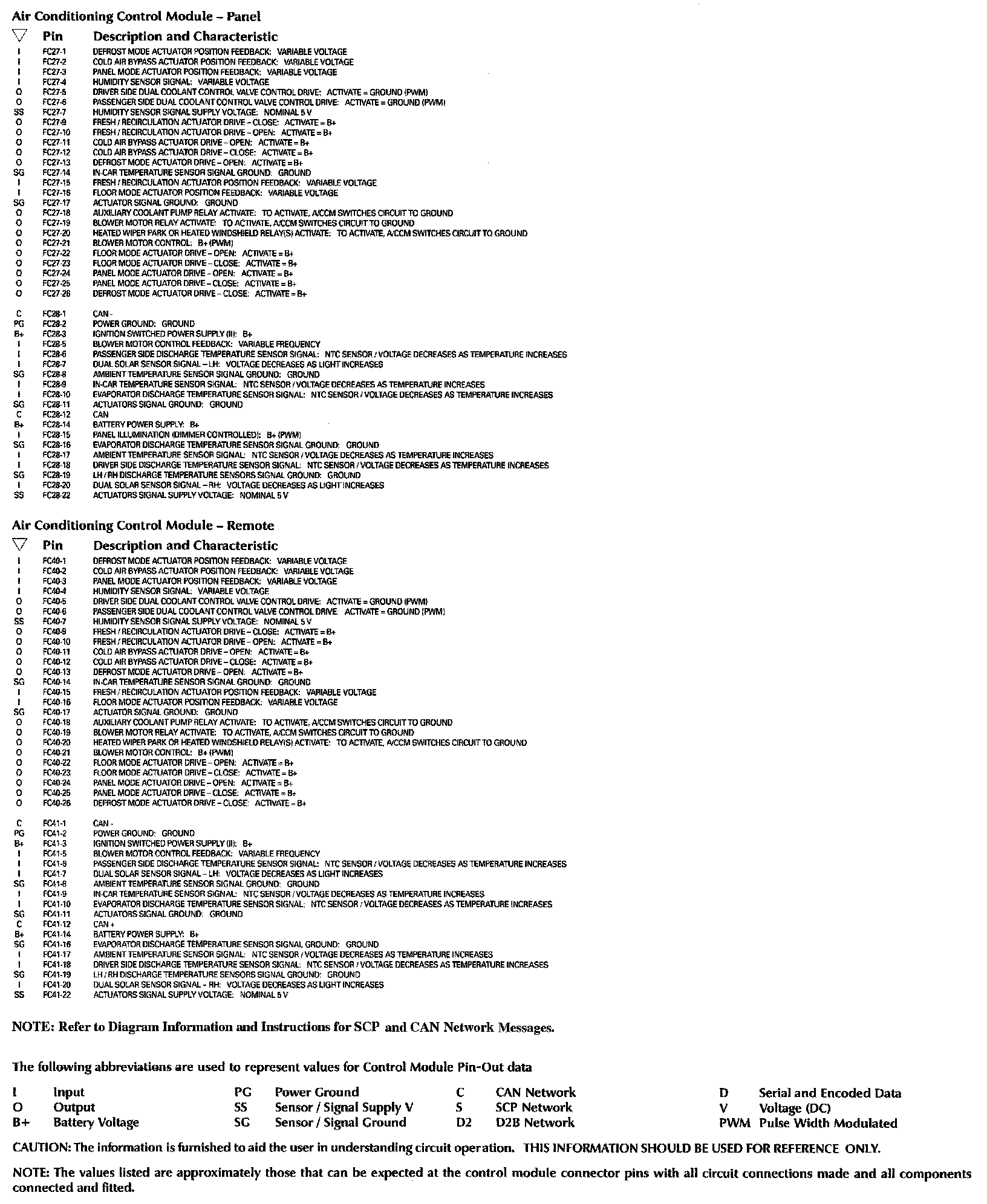 Control Module Pin-Out Information:
