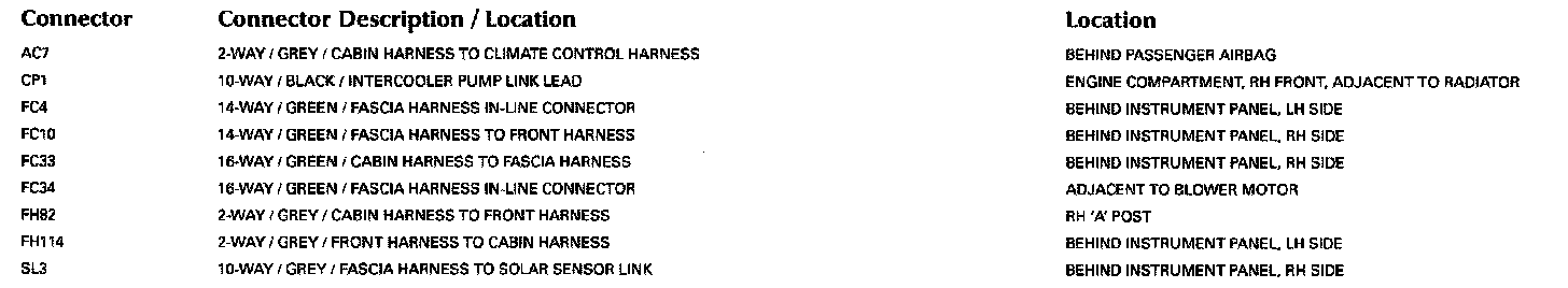 Refer to Vehicle/Locations for detailed information and illustrations regarding the location and identification of harnesses, relays, grounds and control modules. Locations