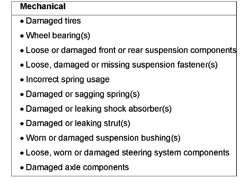 ^ Loose, worn or damaged suspension components.