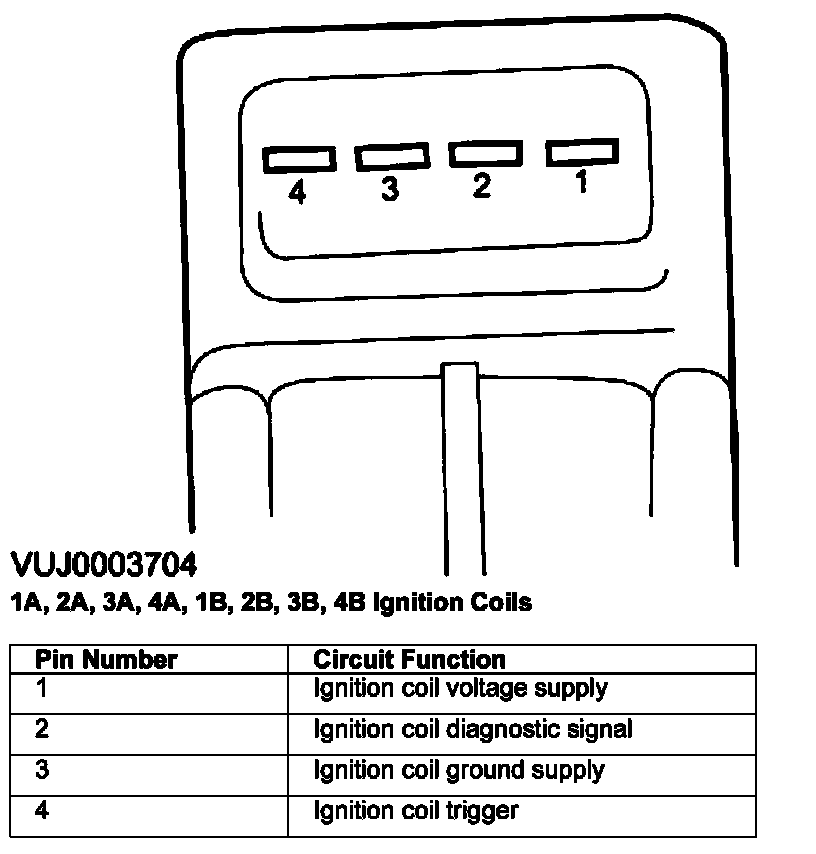1A, 2A, 3A, 4A, 1B, 2B, 3B, 4B Ignition Coils: