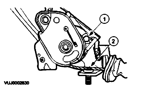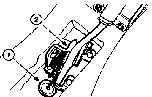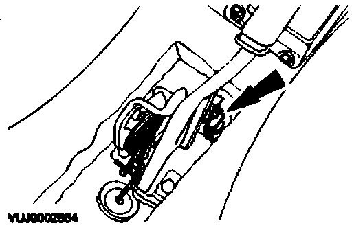 Loosen the rear parking brake cables retaining nut.