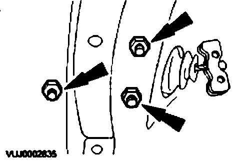 5. Remove the parking brake control retaining nuts.
