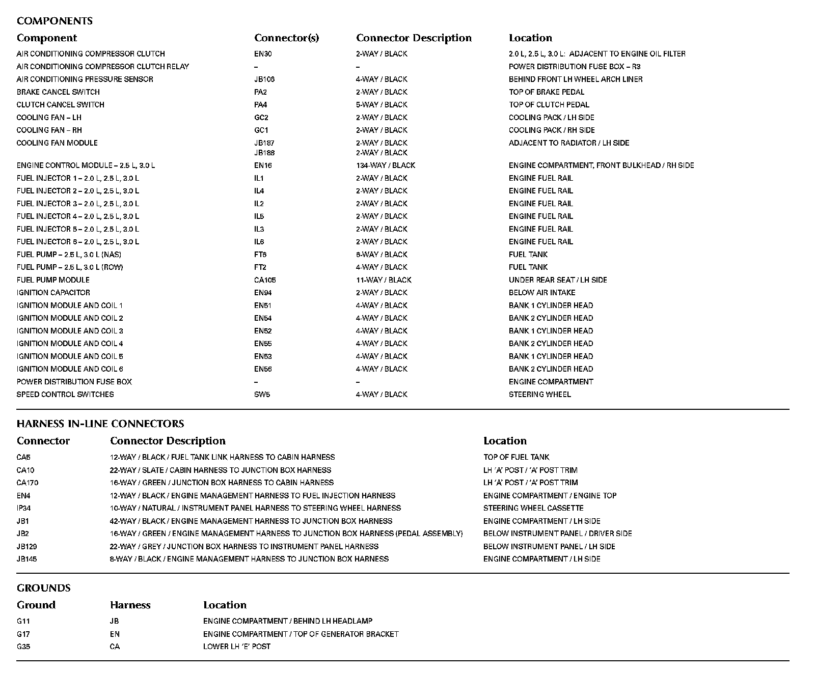 Locations: The location views for Ground Points, In-Line Harness Connectors, Harnesses, and Control Modules depicted within these diagrams can be found at Vehicle/Locations. Locations