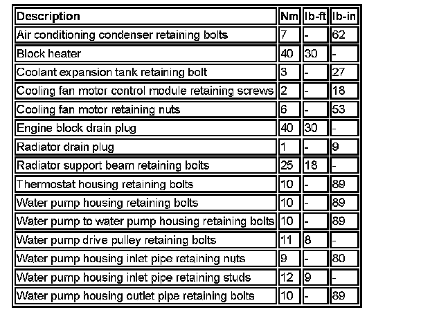 Torque Specifications: