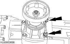 8. CAUTION: Transfer case fluid will drain from the transfer case during this operation.