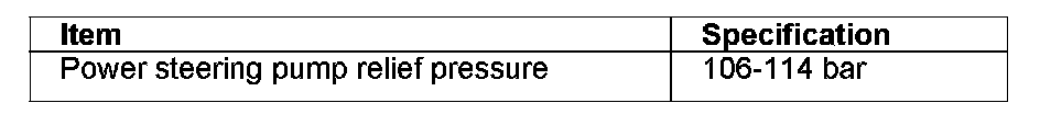 Power steering pump relief pressure 106-114 bar