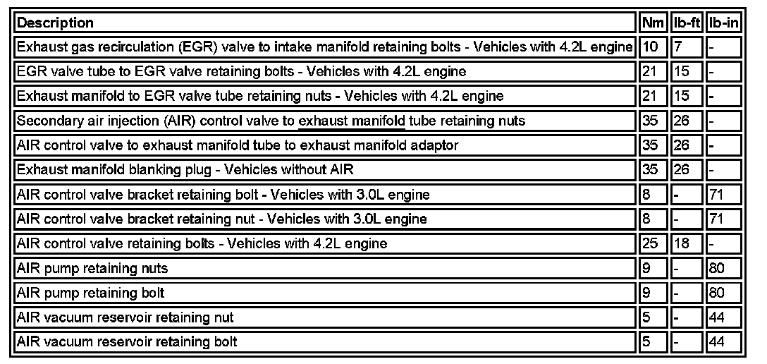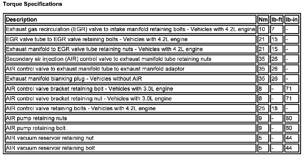 Torque Specifications: