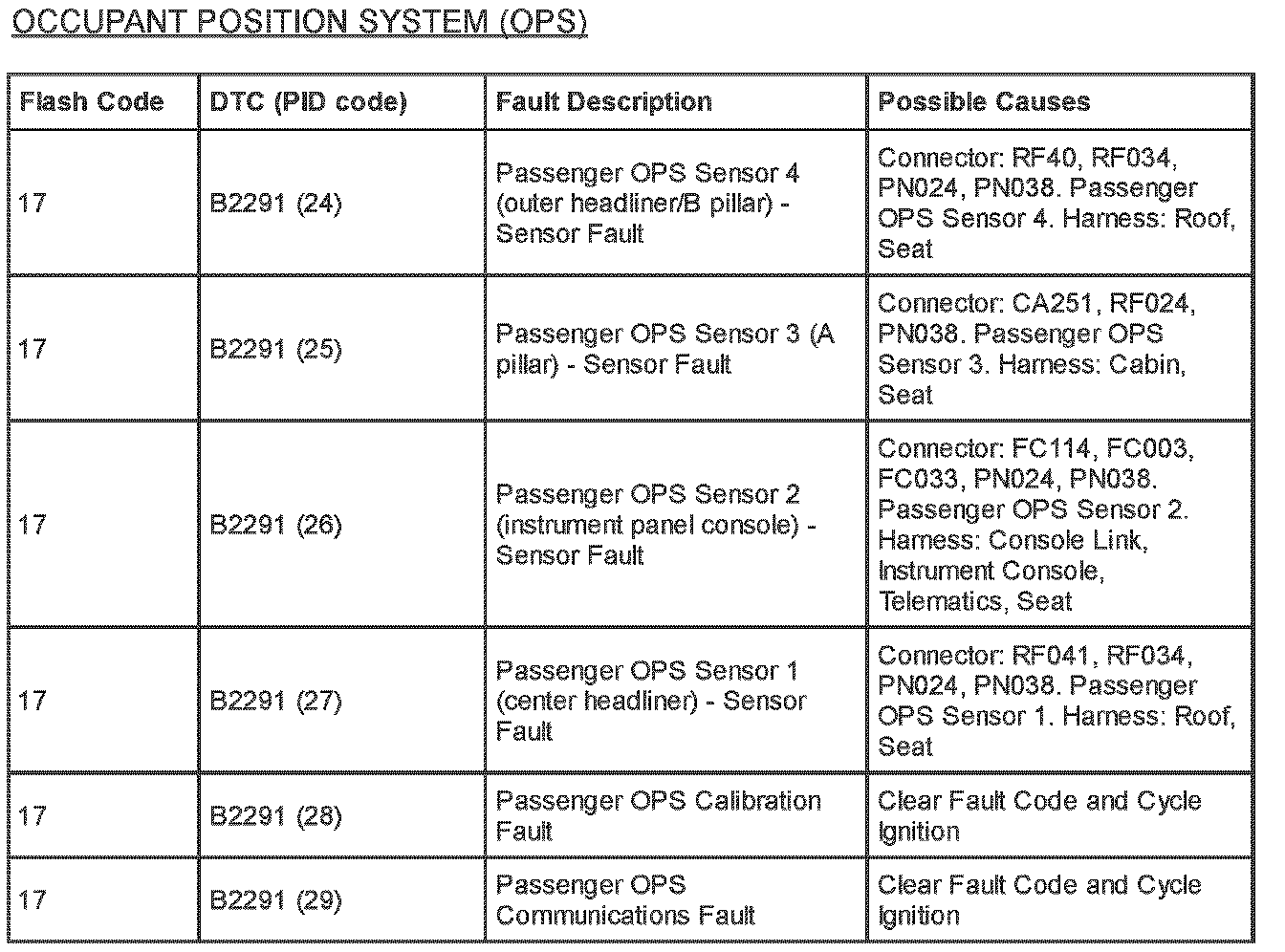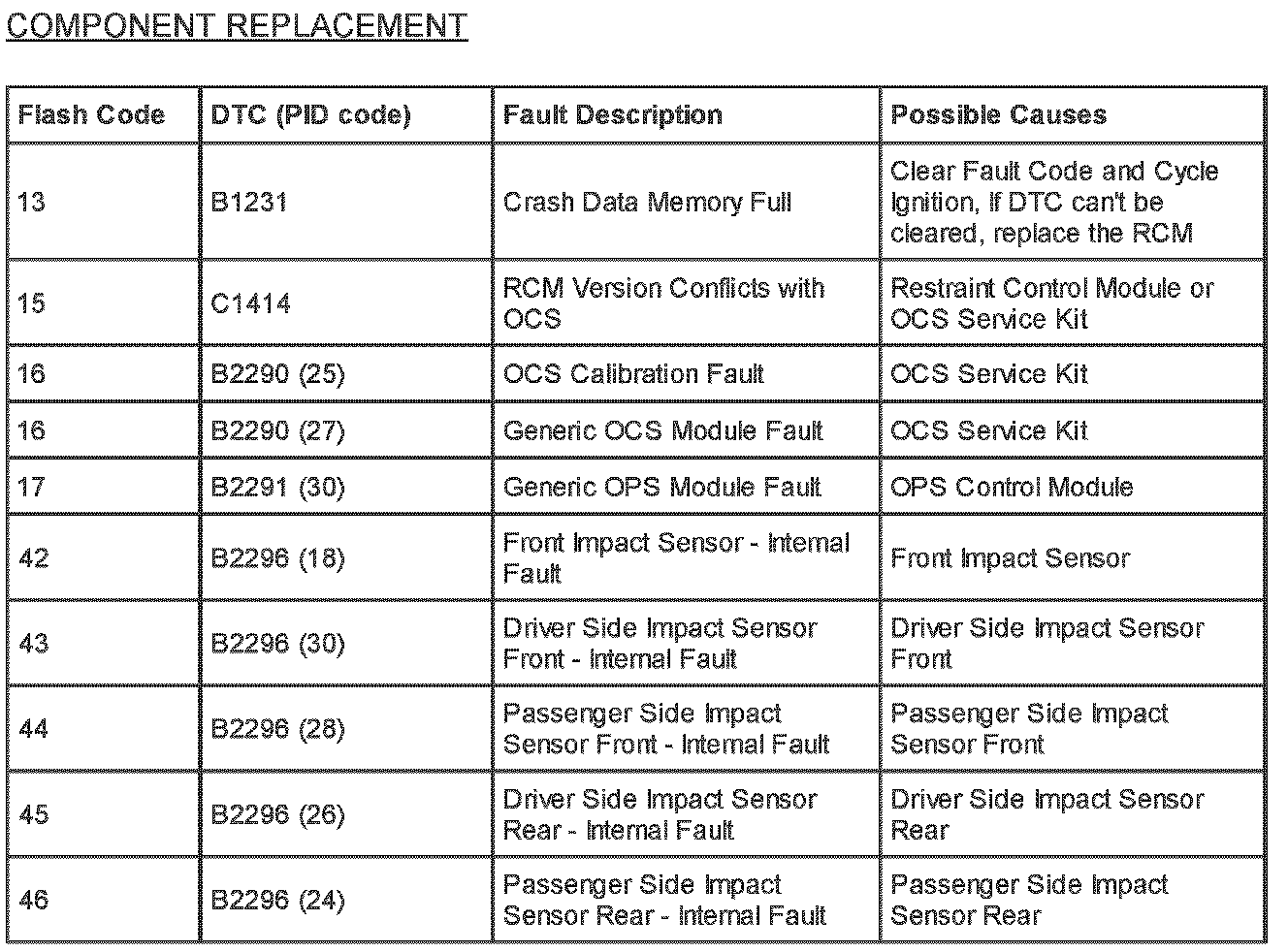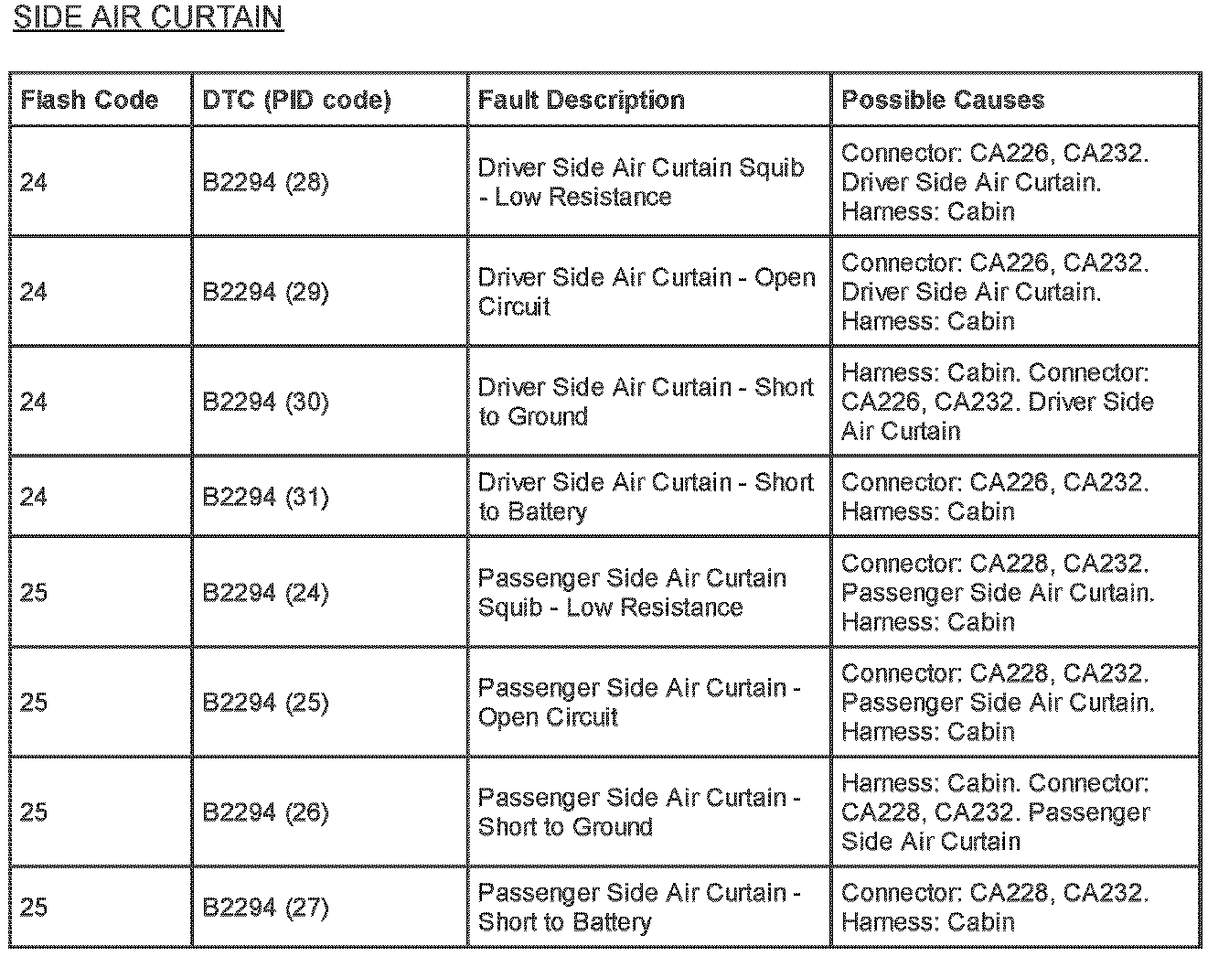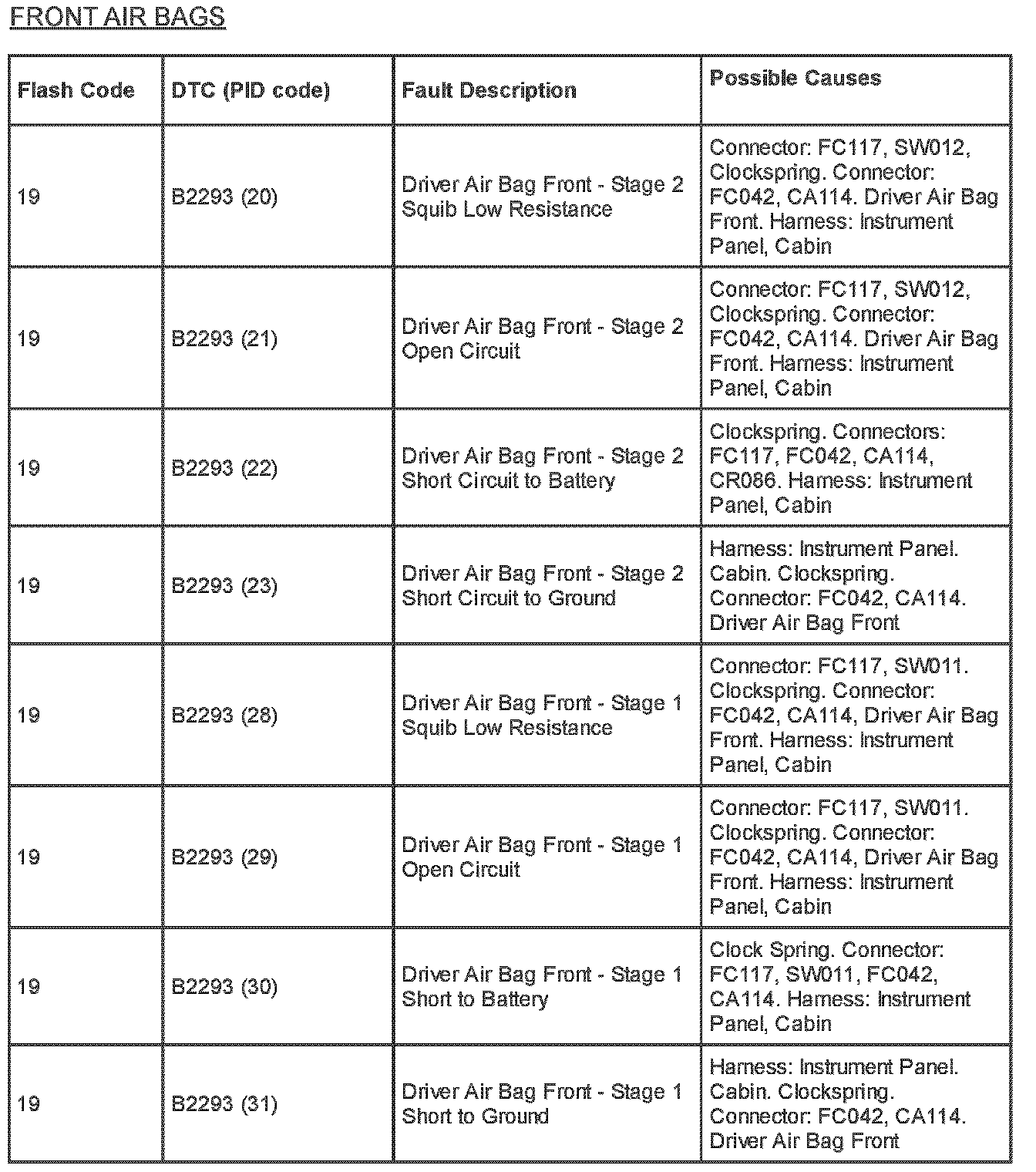 Supplemental Restraint System (SRS) Flash Code and PID Code Definitions - Diagnostic Aid