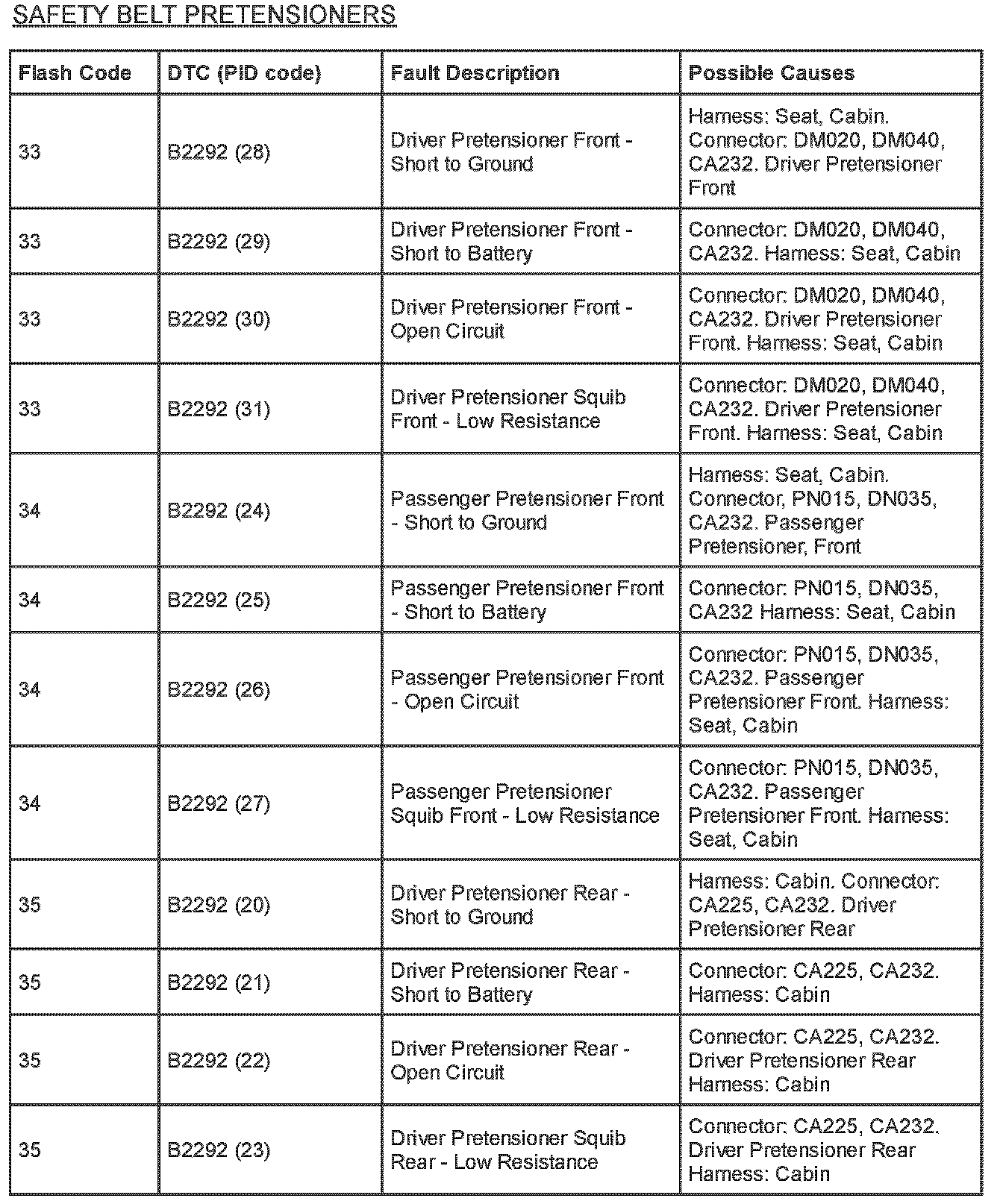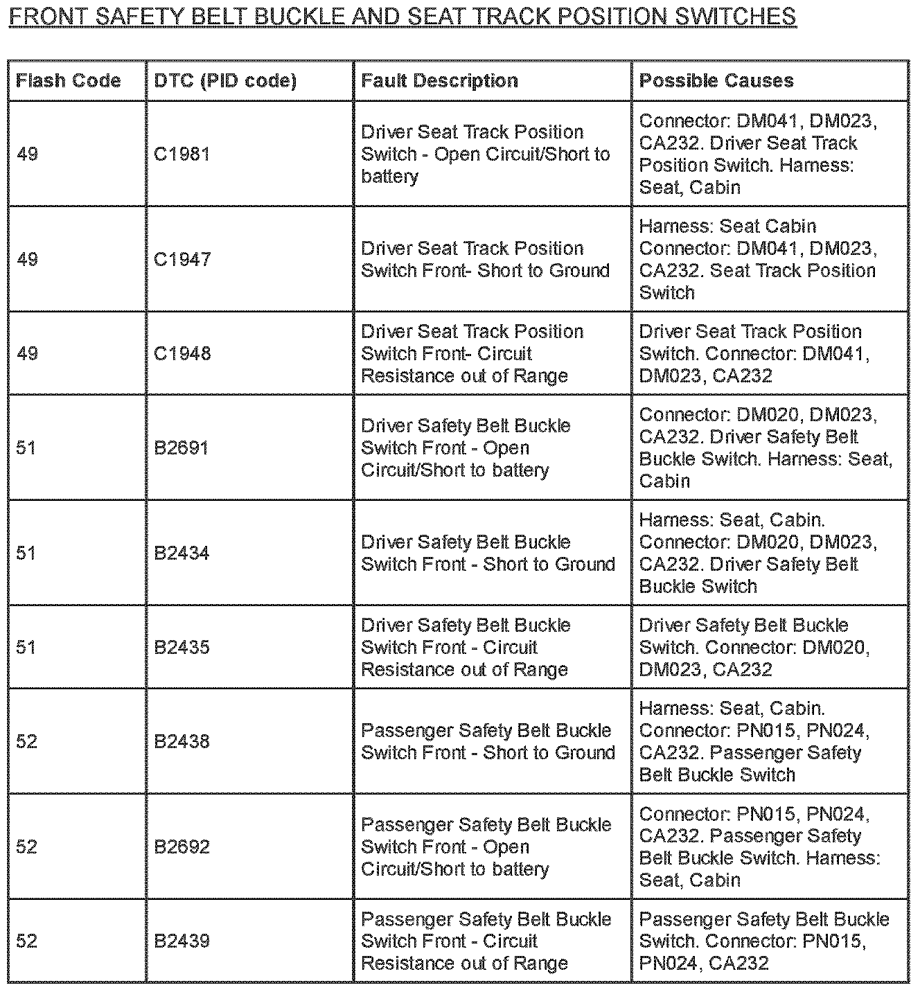 Restraints - SRS Flash Code and PID Code Definitions