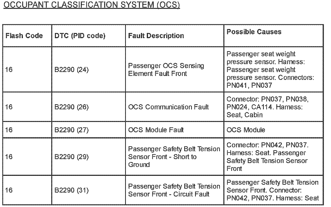 If a fault is identified within the Occupancy Classification System (OCS) Module, passenger seat weight sensor, or passenger seat weight sensor harness, ALL of these components MUST be replaced as a complete kit.