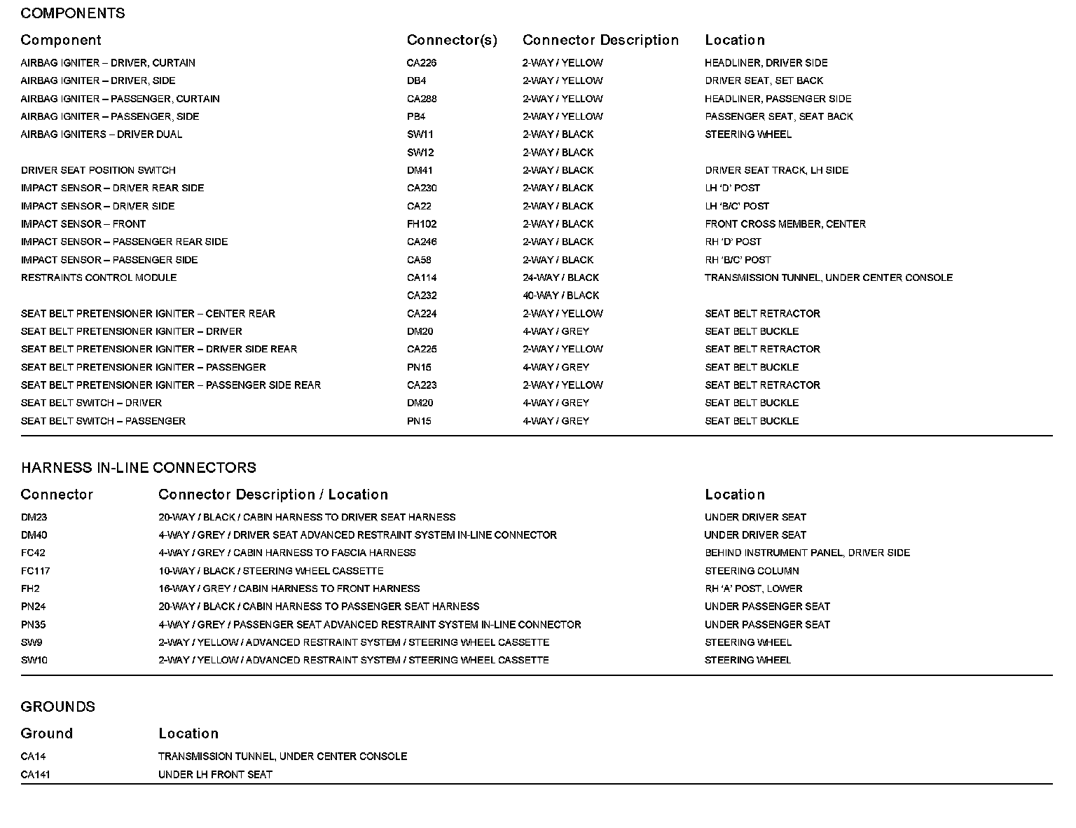 Locations: The location views for Ground Points, In-Line Harnesses, and Control Modules depicted within these diagrams can be found at Vehicle/Locations. Locations