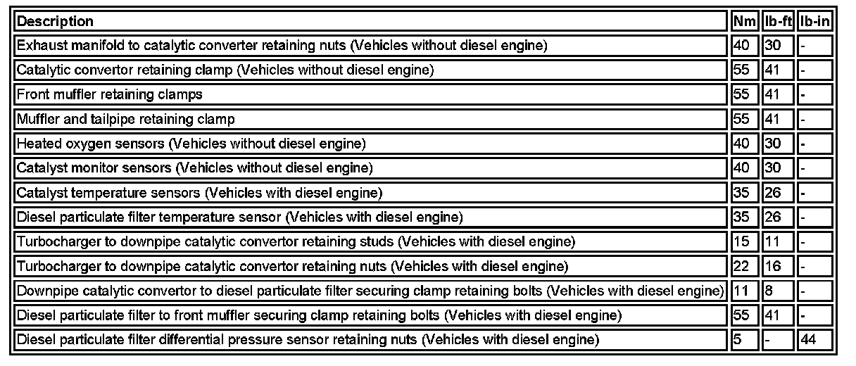 Torque Specifications: