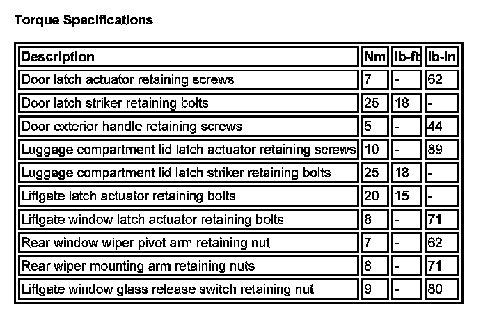 Torque Specifications: