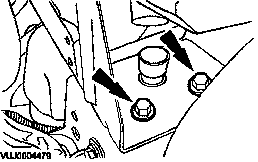 3. Remove the ABS module support bracket retaining bolts.