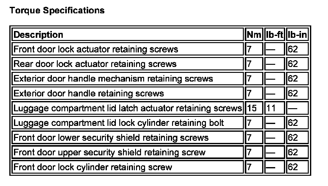 Torque Specifications: