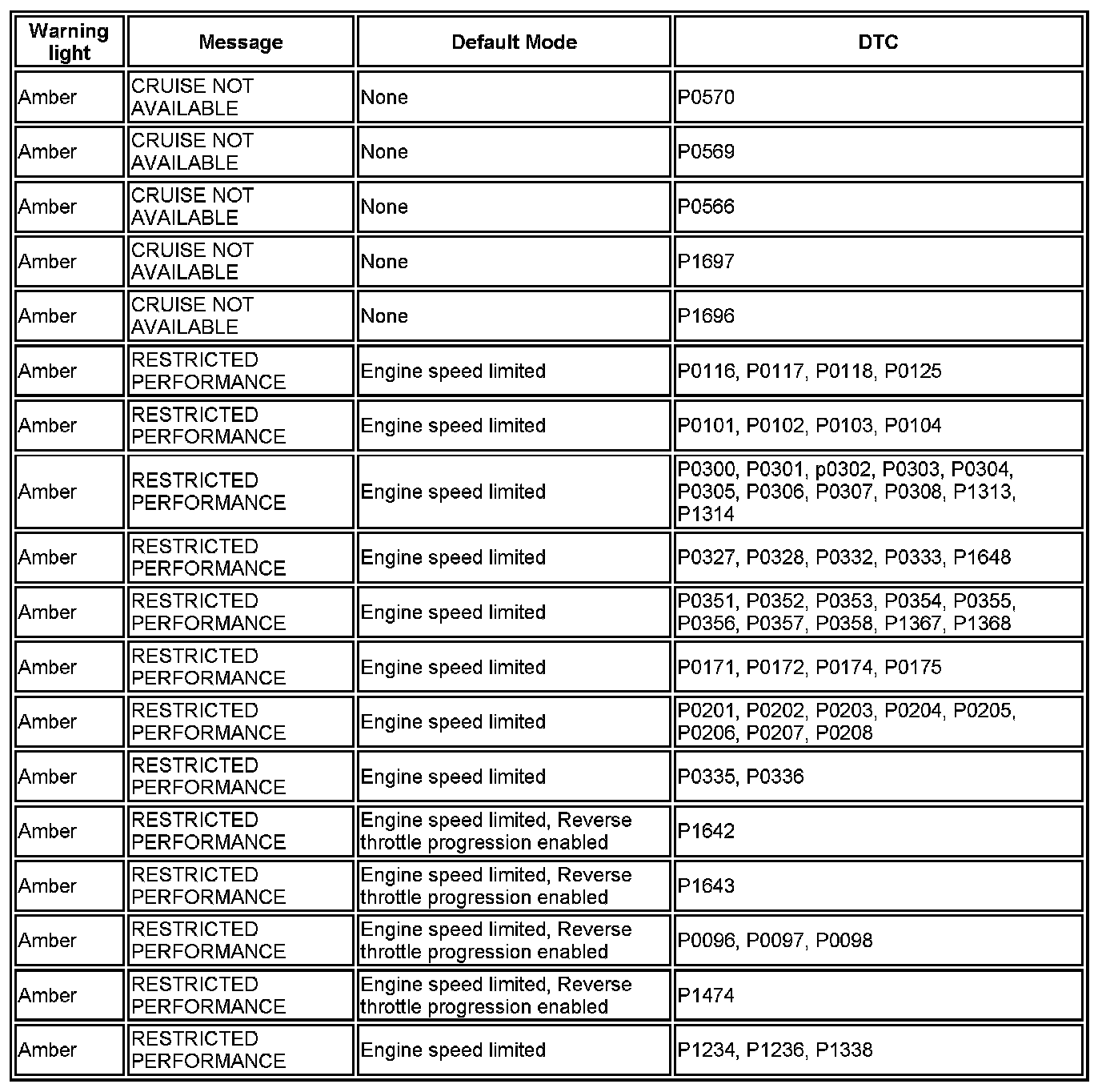 - Speed (cruise) control Inhibited