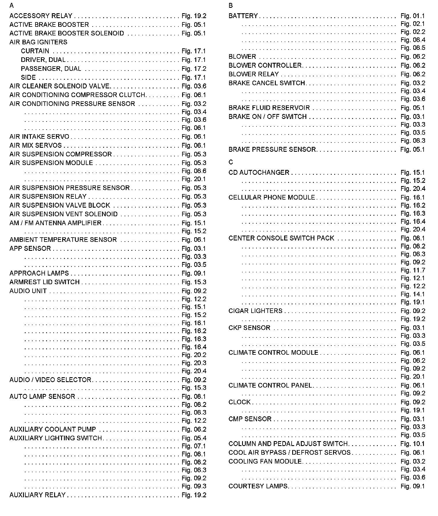 If a link on the index to a specific diagram listed therein is not provided, that means that the diagram in question does NOT apply to the vehicle model selected."
