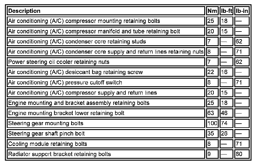 Torque Specifications: