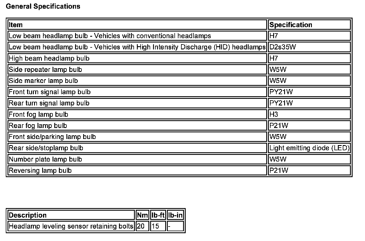 Lighting and Horns: Specifications