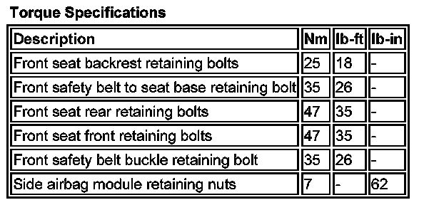 Torque Specifications: